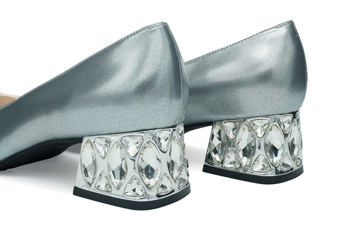 どこから見ても美しい大粒クリアストーンのヒールが、特別な日の装いを一段と引き立てます。