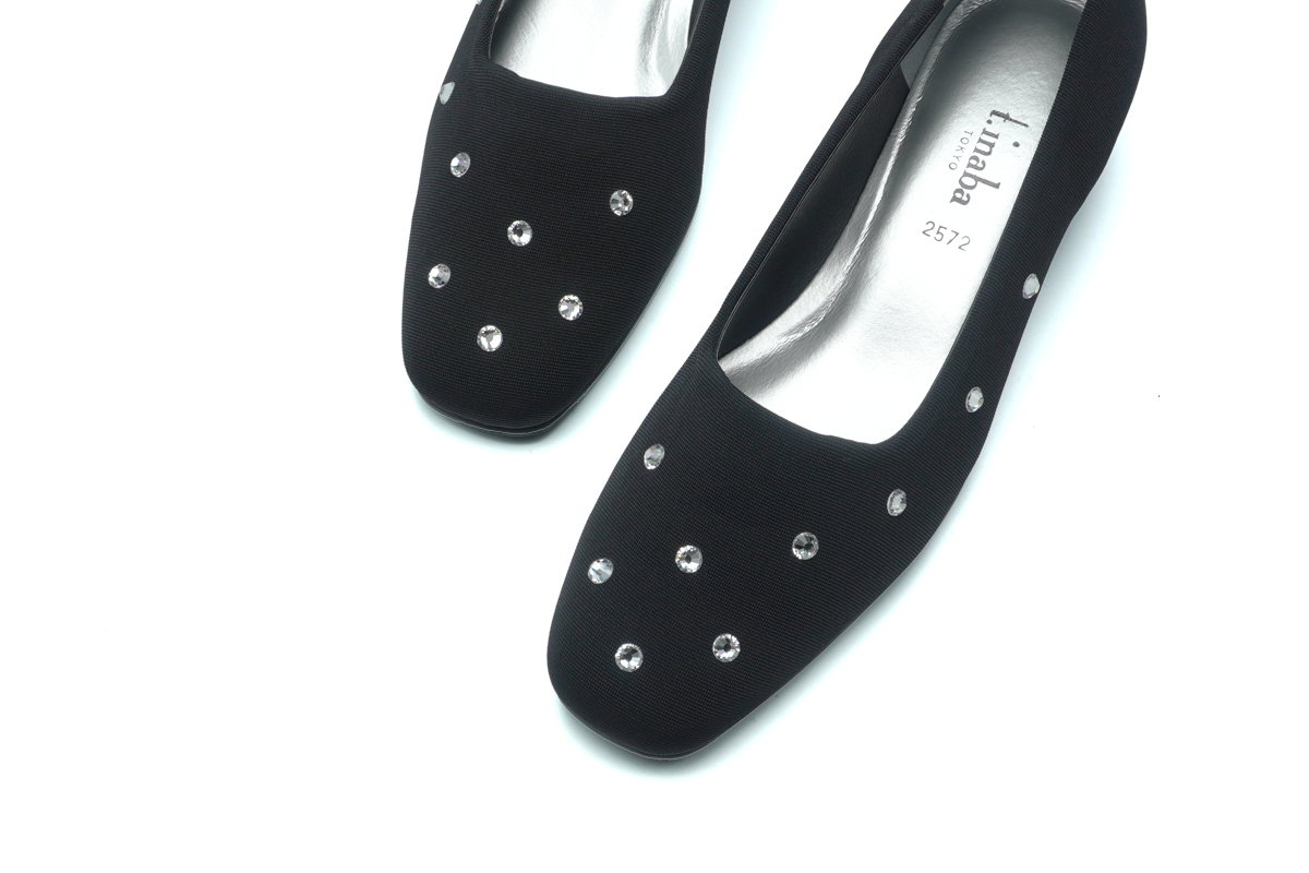 足あたりの優しいストレッチ素材に細やかな輝きを放つラインストーンを