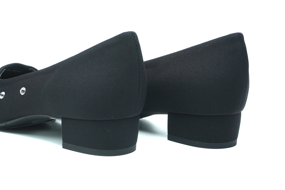 全面に散りばめた、ラグジュアリーなローヒールパンプス。