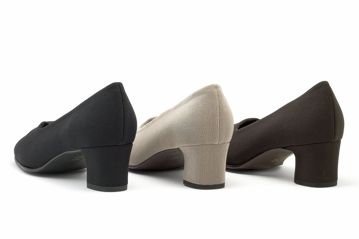 イナバ・オリジナルのストレッチを使用した、プレーンパンプス。