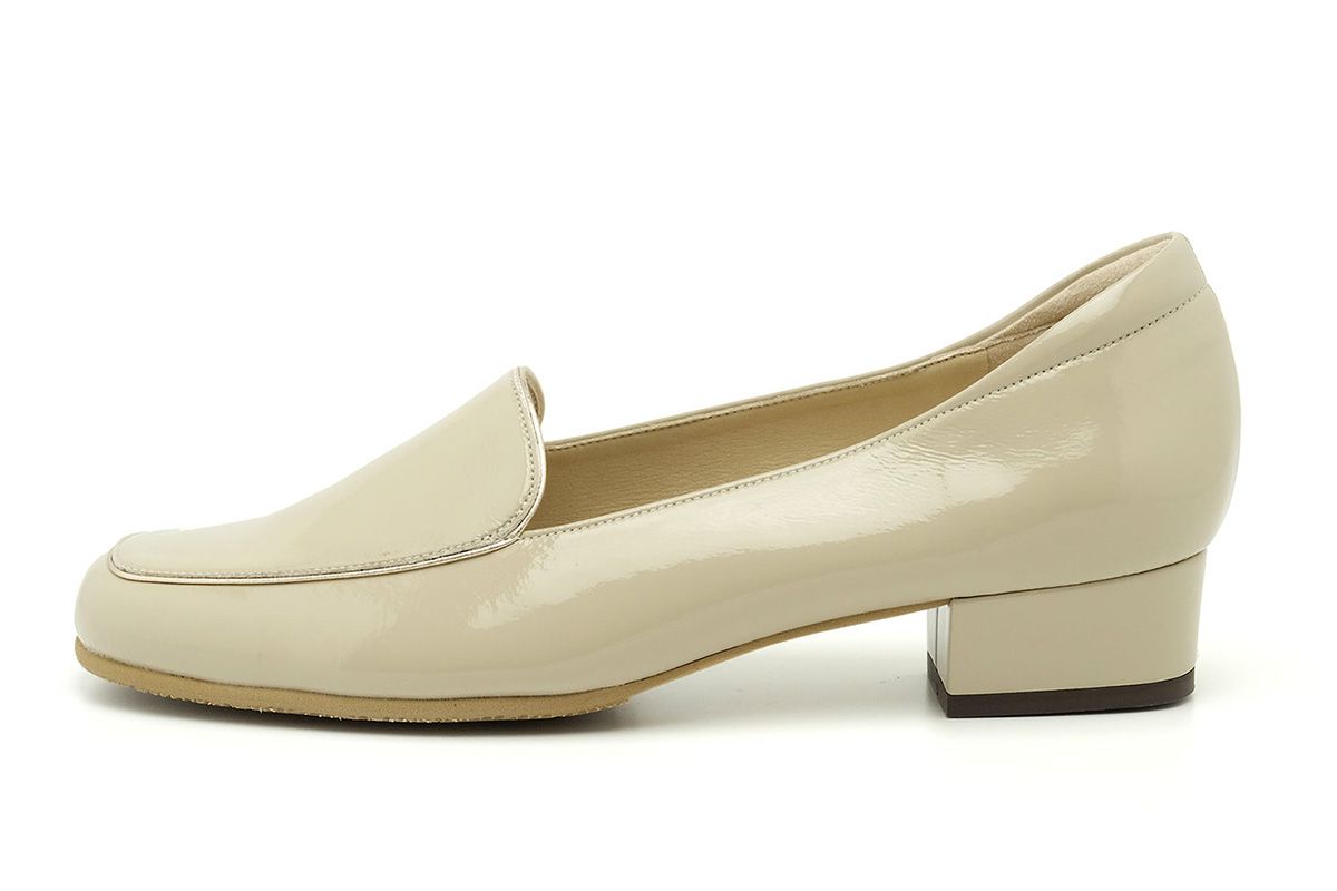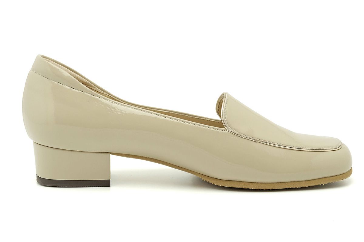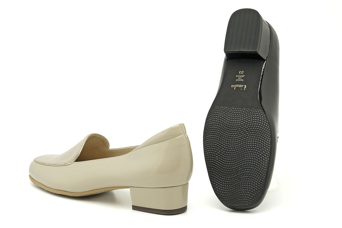 シンプルで清潔感のあるスリッポンスタイルのエレガンスシューズです。 指先に心地よいゆとりを感じられるラウンドスクエアトゥ。 足の甲にフィットし、踵から土踏まずにかけてしっくりとなじむ履き心地です。 ふっくらと弾力のあるインソールを使用。 繊細な足の裏にも優しい感触です。 丈夫で軽い足あたりの人工皮革を使用。 モカ(甲の切り替え部分)の周囲を極細のメタリック素材でトリミング。 さりげない輝きが高級感を引き出してくれます。 スニーカーに似た快適な履き心地と、パンプスのようなエレガントなシルエットのシューズは、頼りになる1足となりそうです。