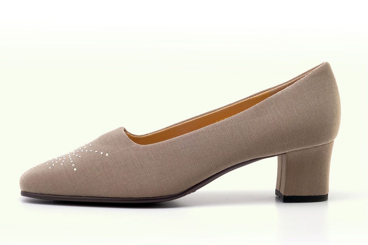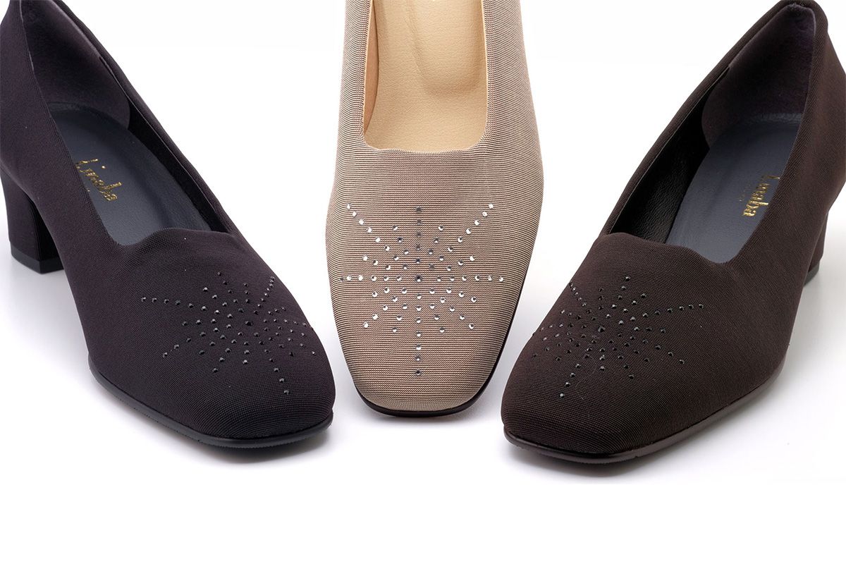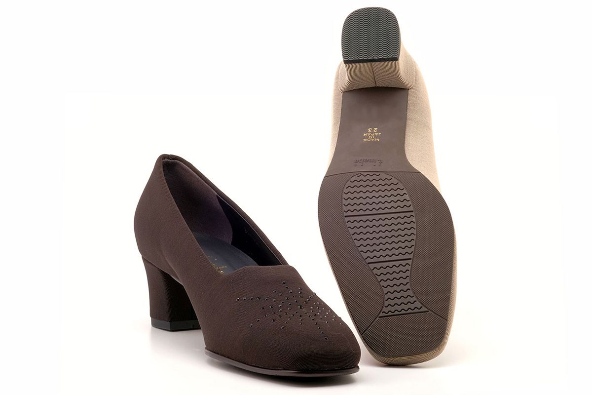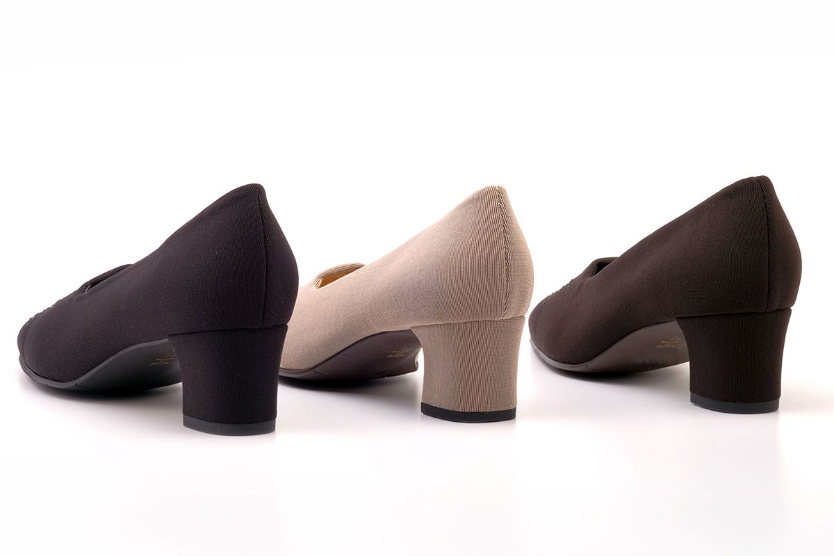 イナバ・オリジナルのストレッチを使用した、バックベルトパンプス。