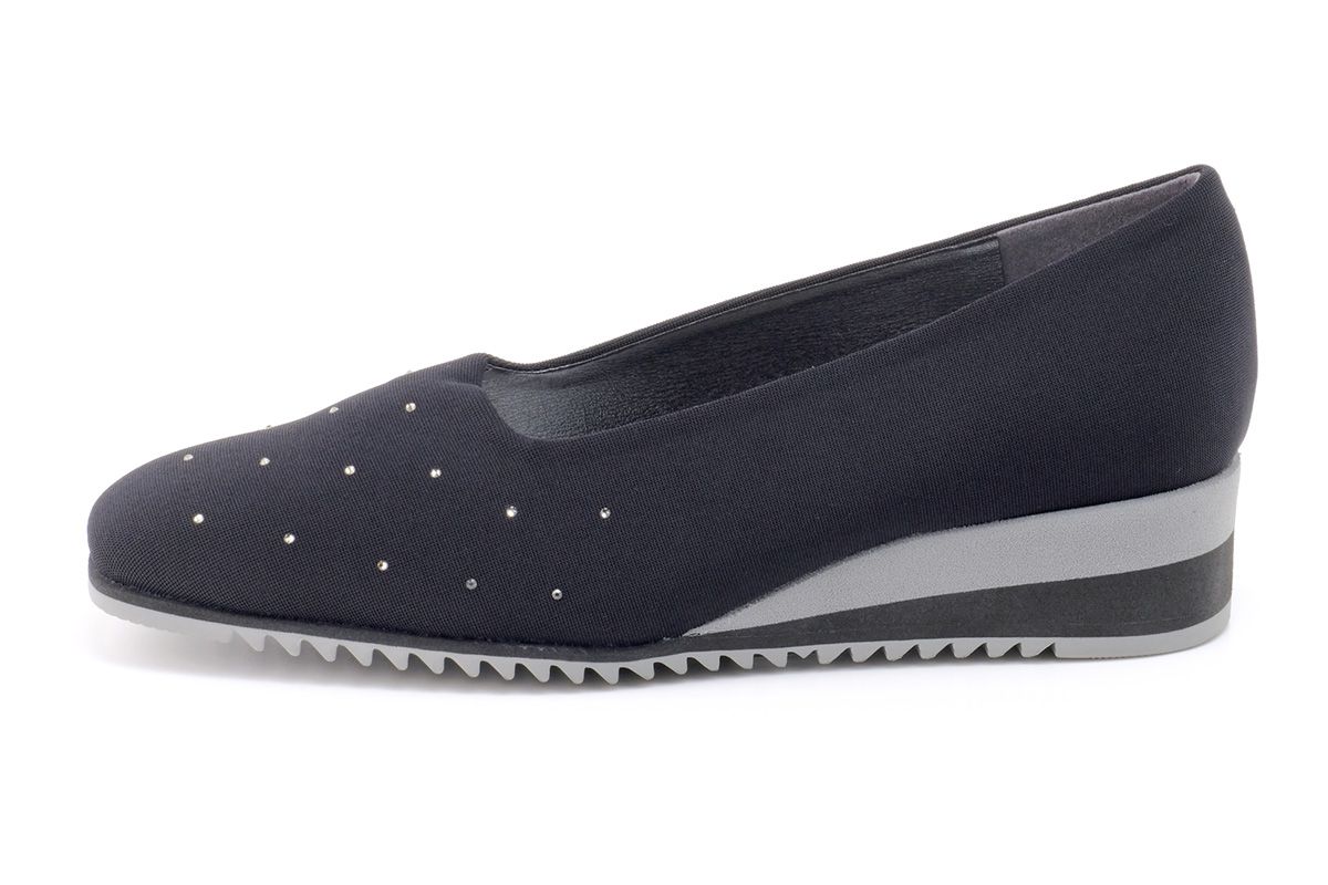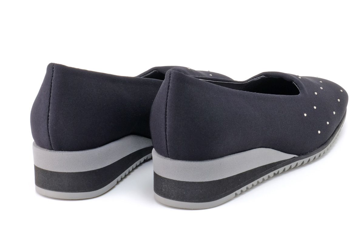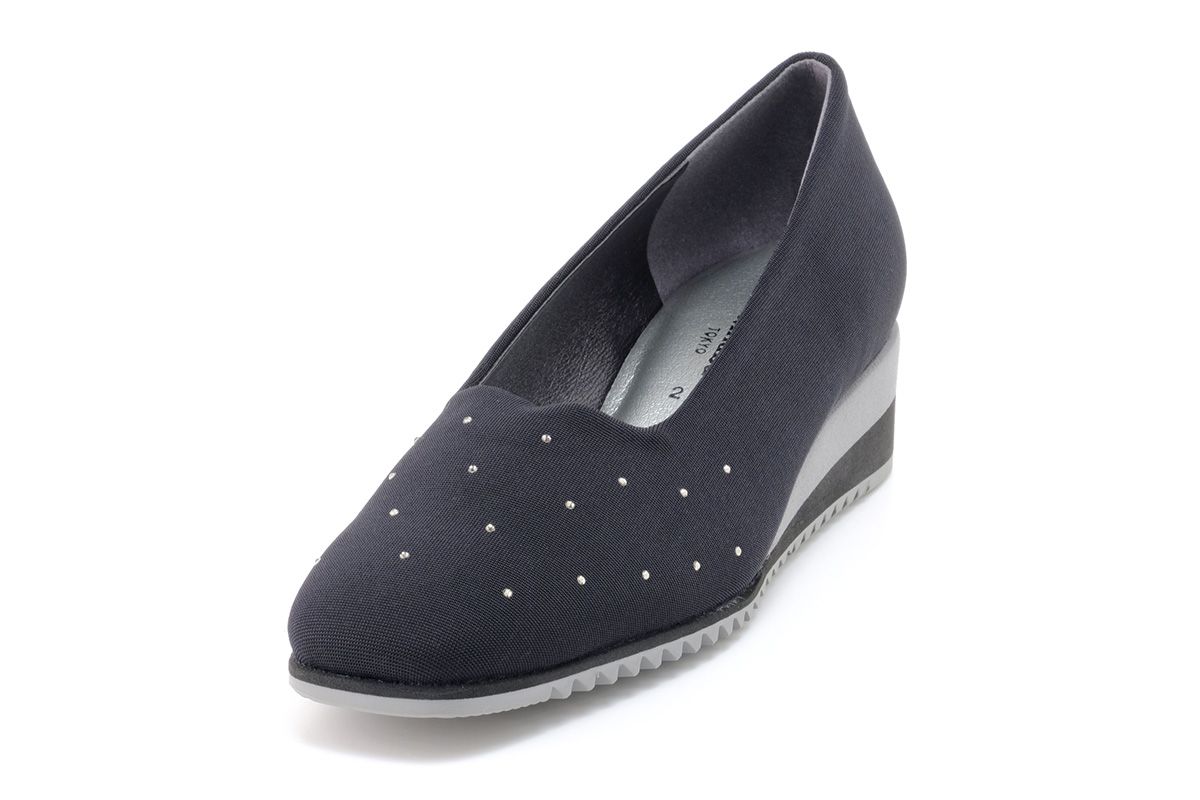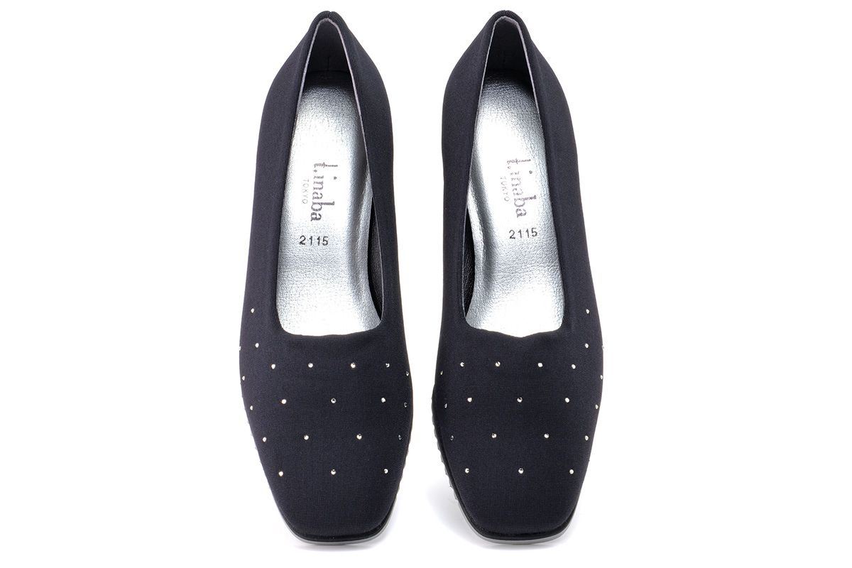 シンプルなデザイン中心のストレッチシューズの中で、こちらはラインストーンのアクセントが際だつおしゃれな1足となっています。