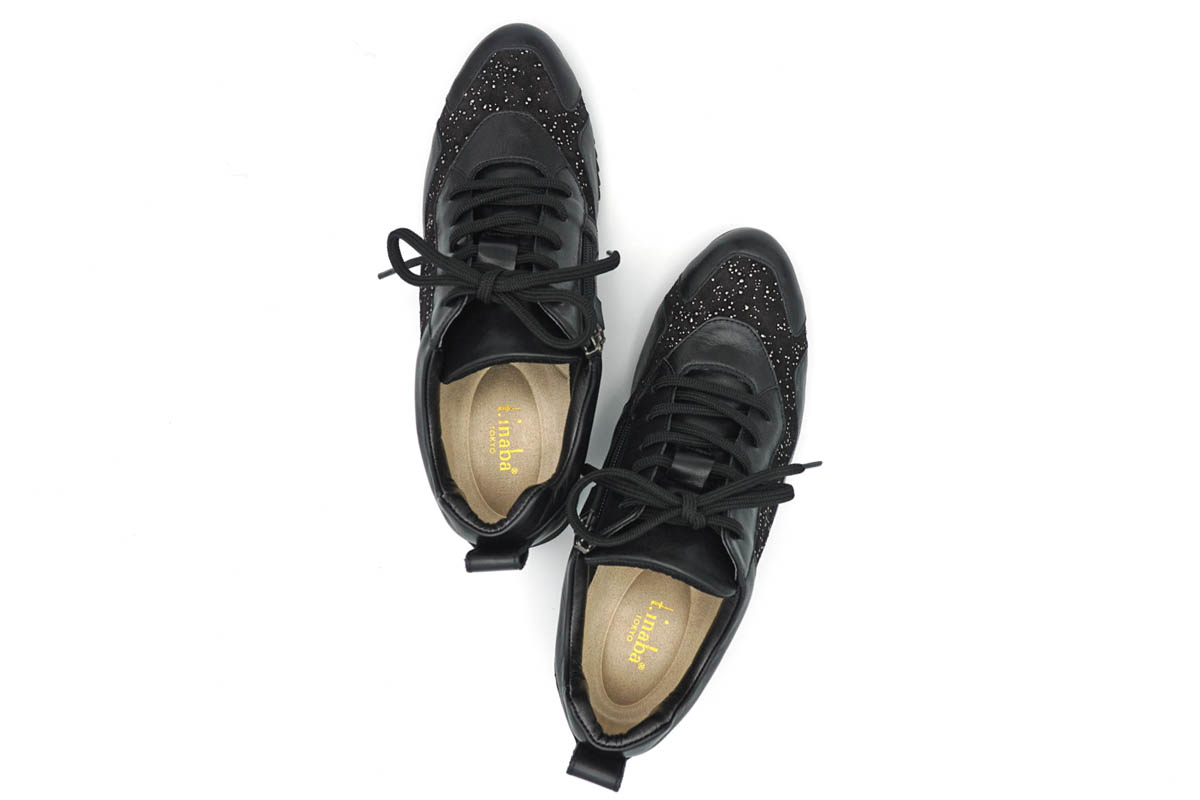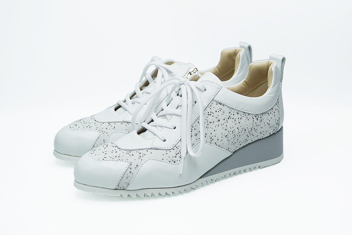 グリッターを散りばめたような高級感漂う素材使いのエレガントスニーカーです。