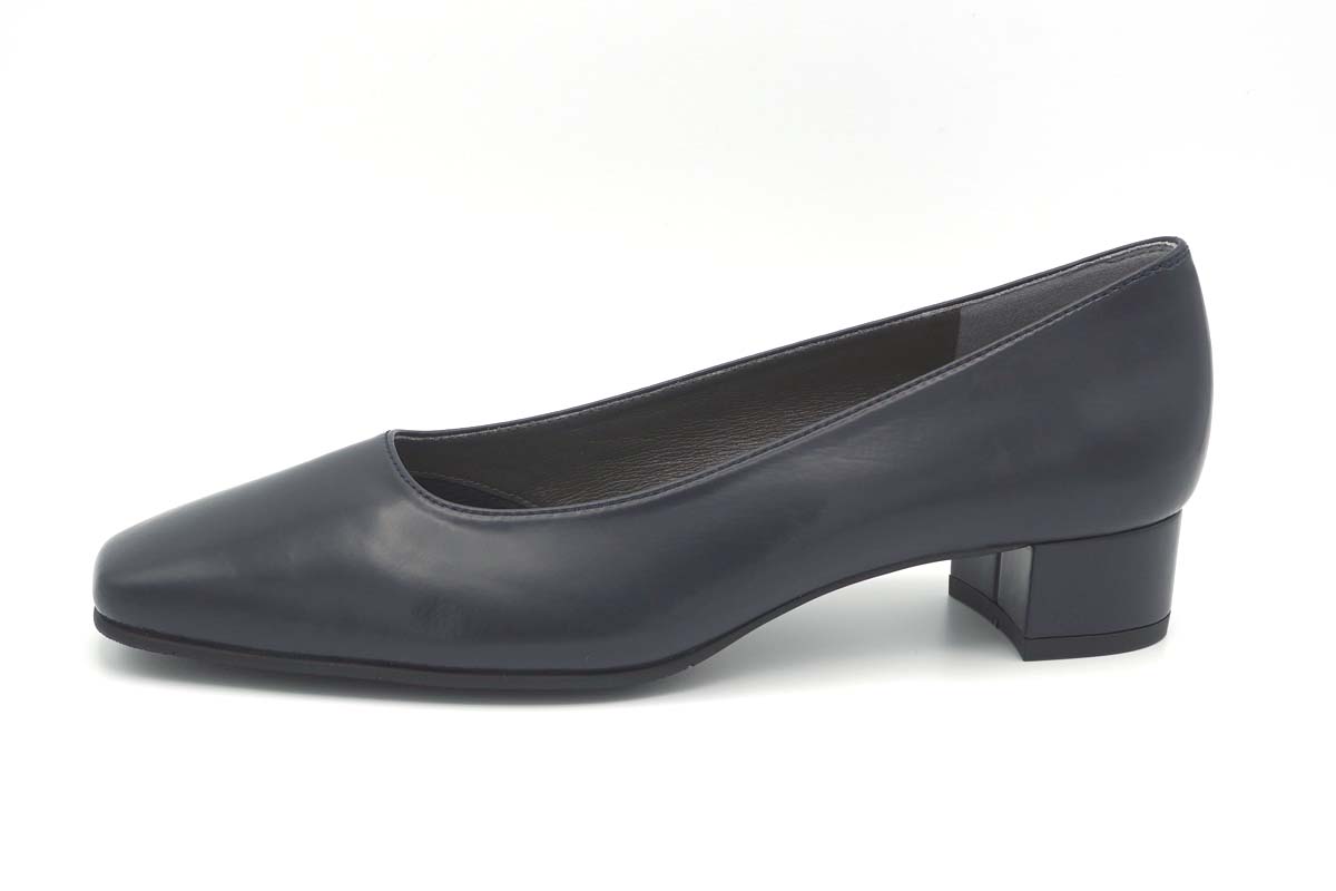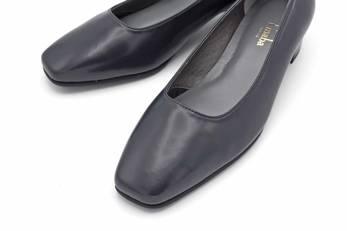 適度な厚みがあり、やや丸みを帯びたスクエアトゥにストレートヒールを合わせました。