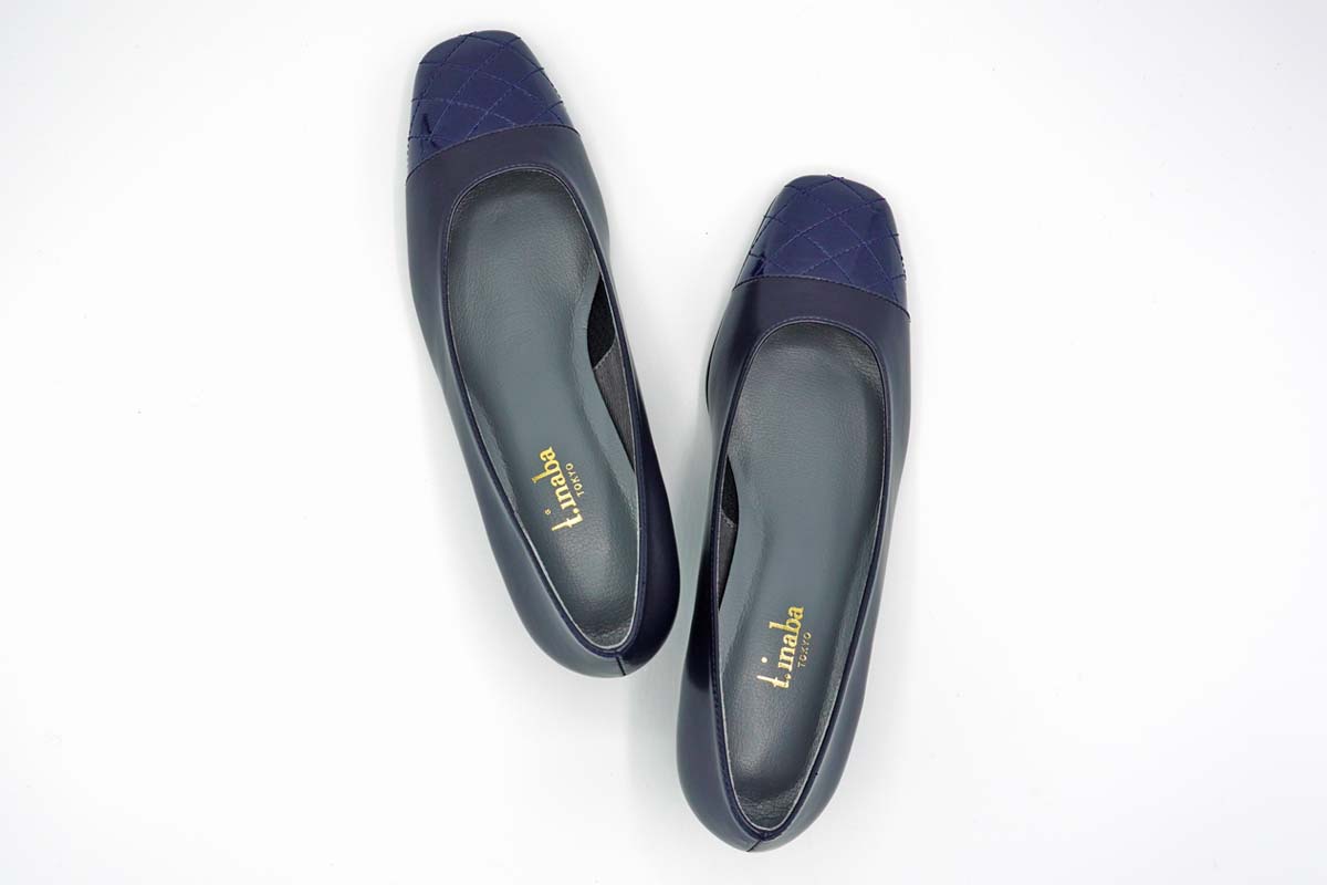 爪先は艶やかなエナメルに、格子柄にステッチをかけ、表情豊かな素材感に仕上げました。
