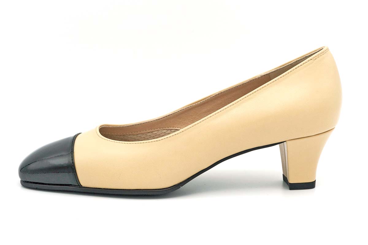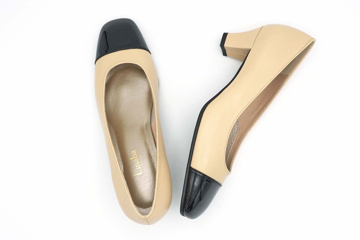 素材やカラーのコントラストがおしゃれなパンプスです。