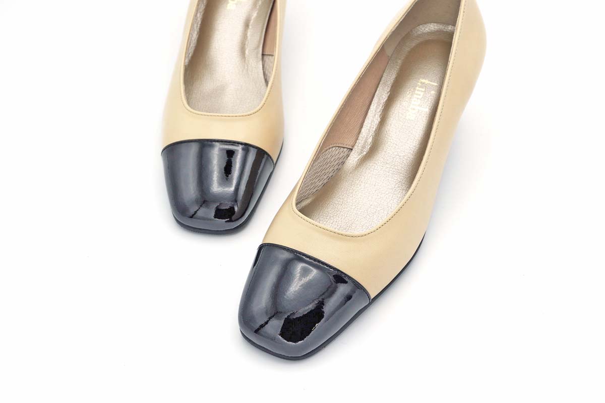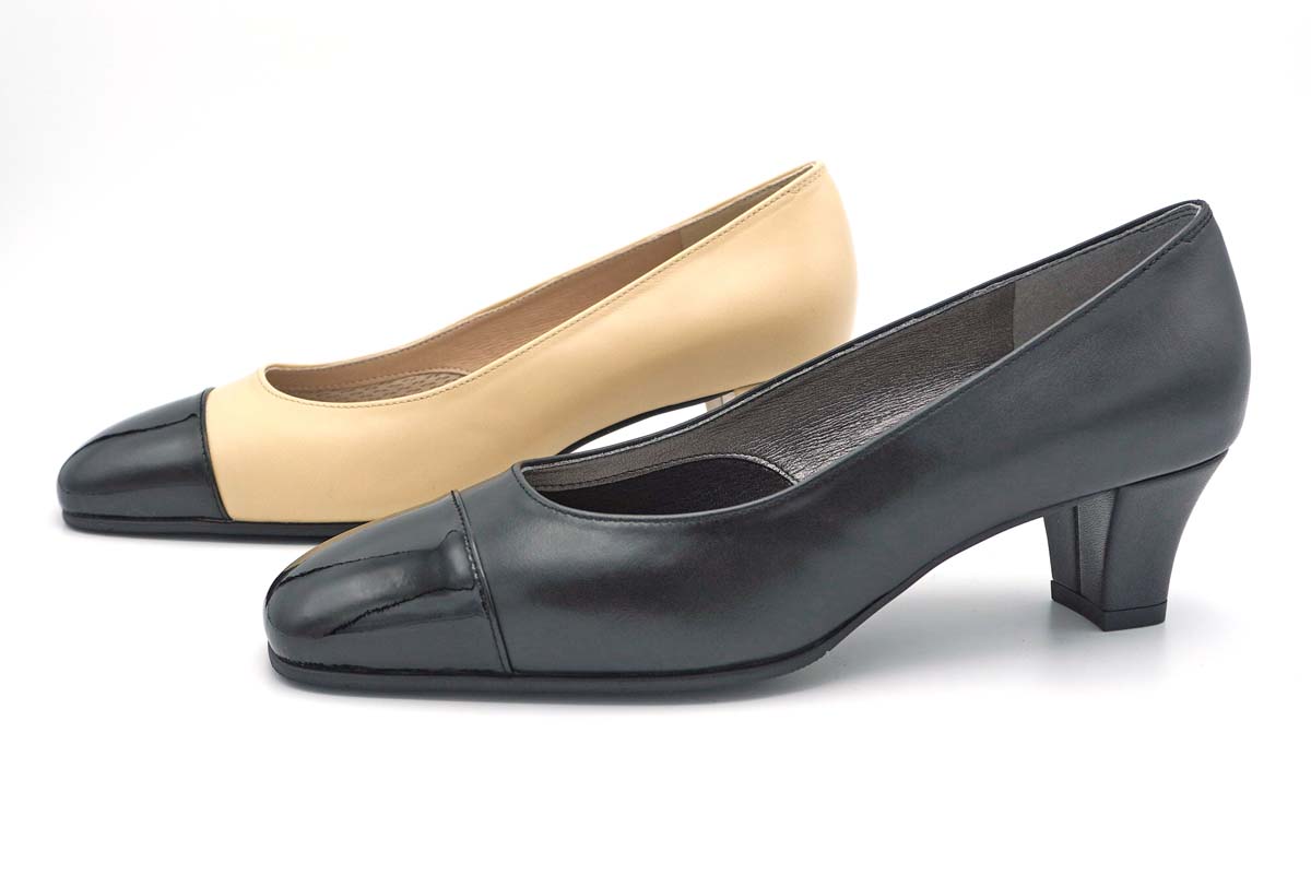 爪先に艶やかなブラックエナメルを用い、コーディネートにアクセントを与えてくれます。