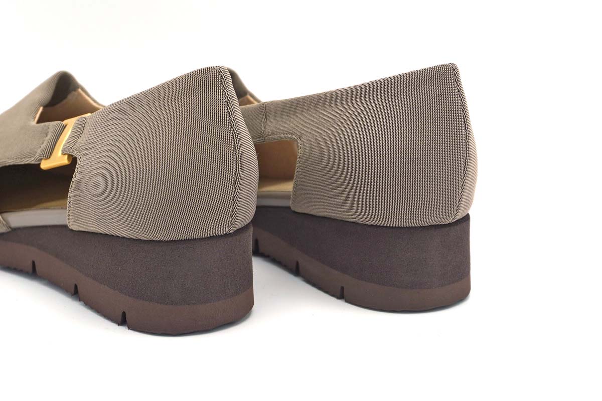 足の甲に沿ってフィットするよう、履き口は伸縮するよう設計されています。