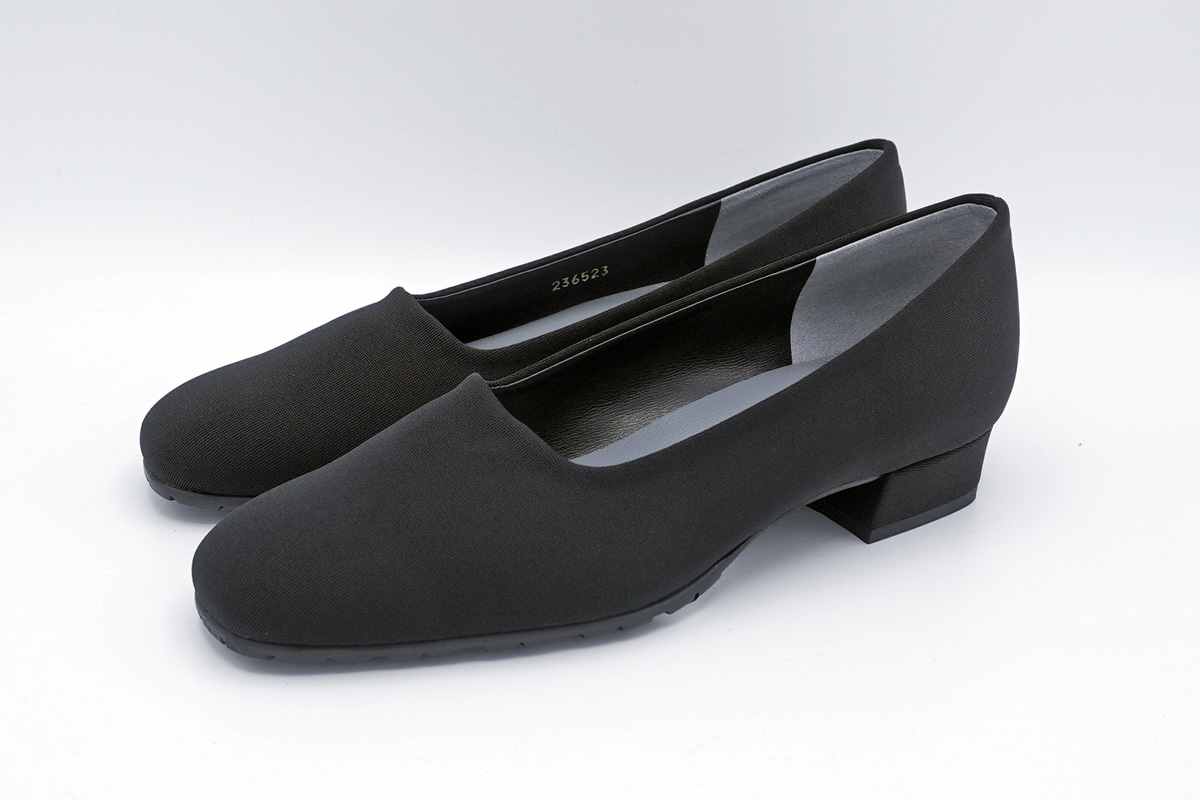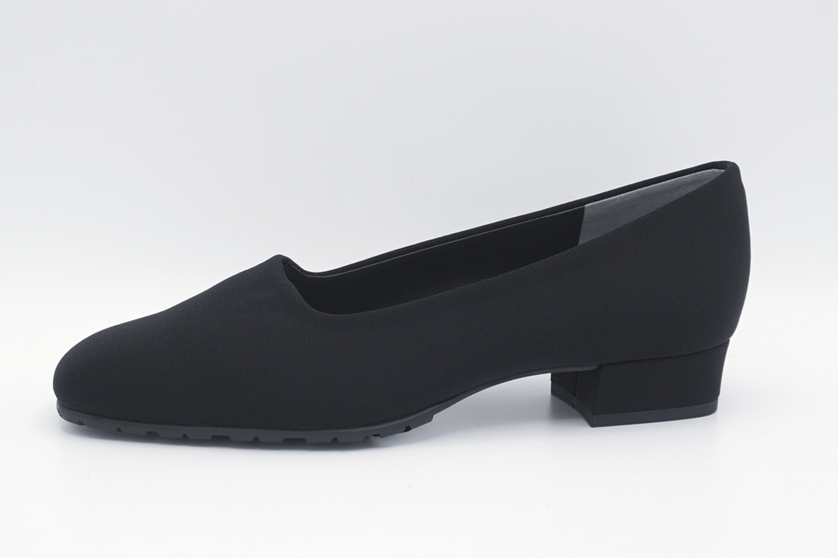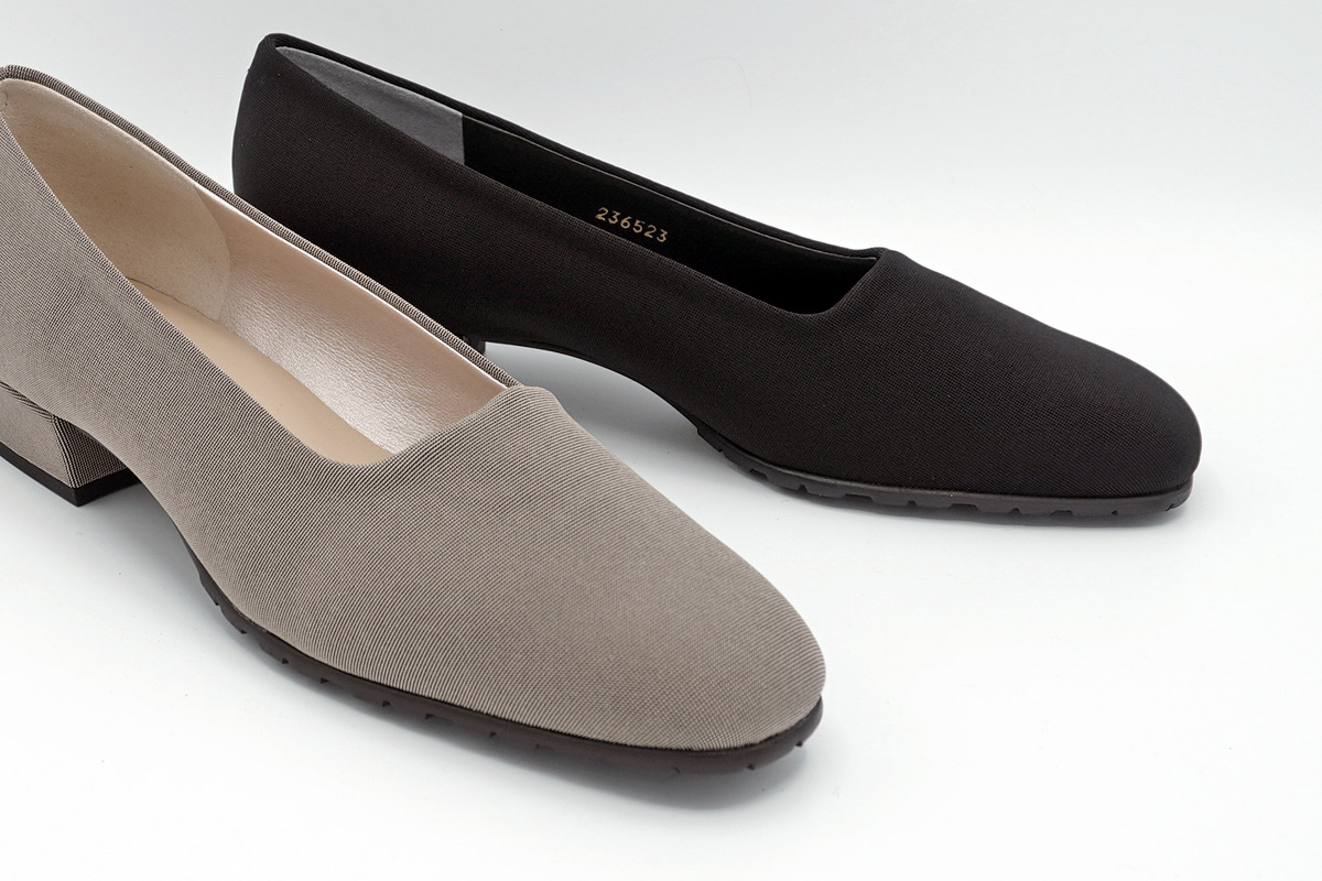 シルエットの美しさを際立たせる、2.5cmヒールのシンプルなストレッチパンプスです。