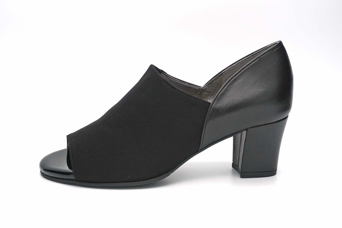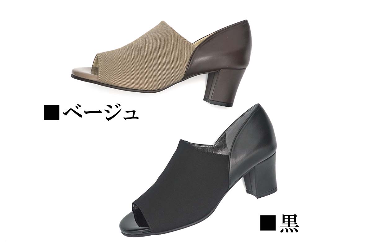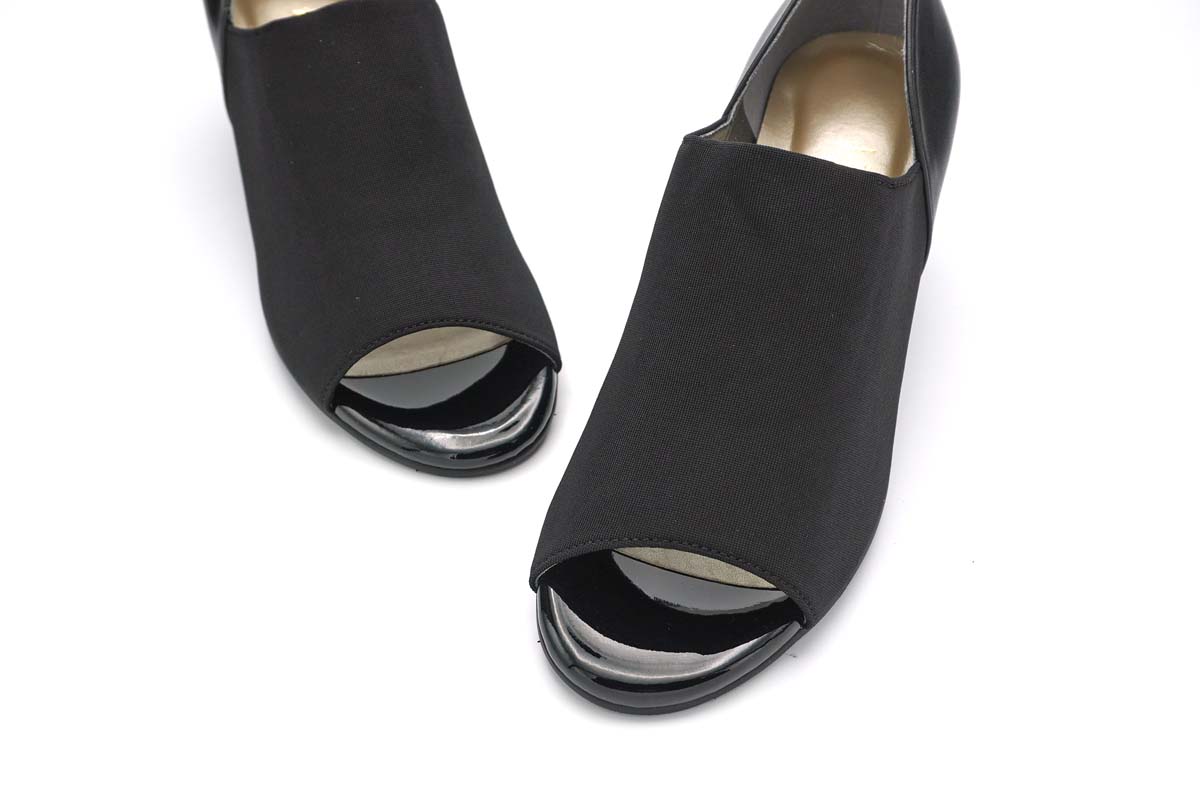 イタリア製ストレッチ素材を使用し、心地良いフィット感のオープントゥパンプスです。