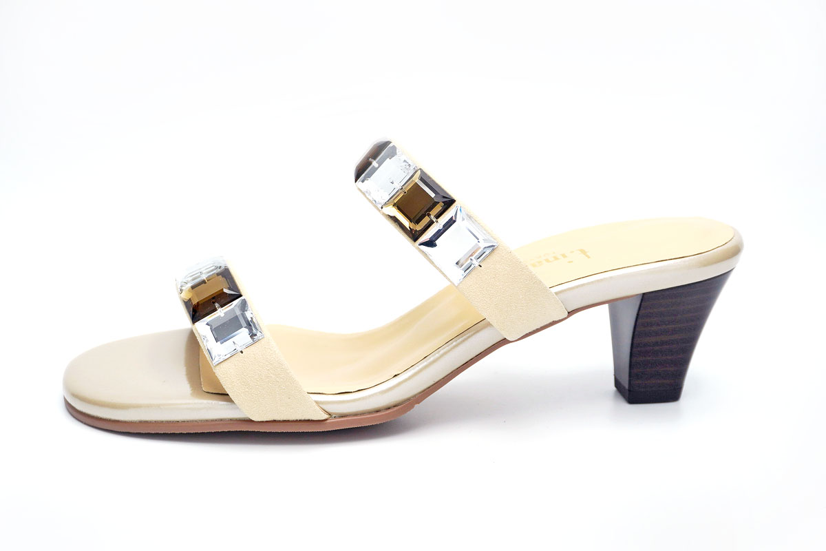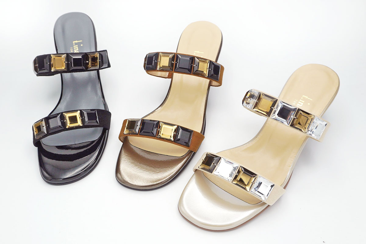 透明感のある輝きが魅力的なラインストーン付きミュールです。