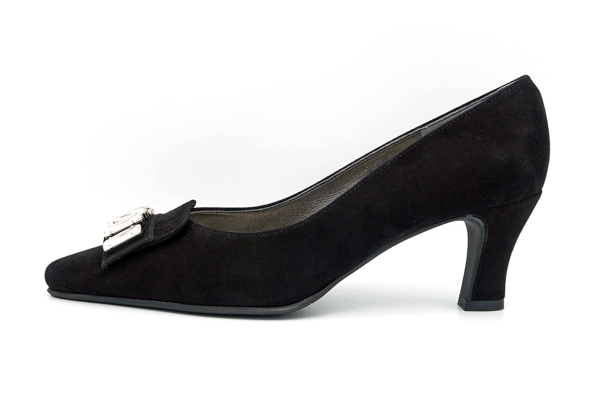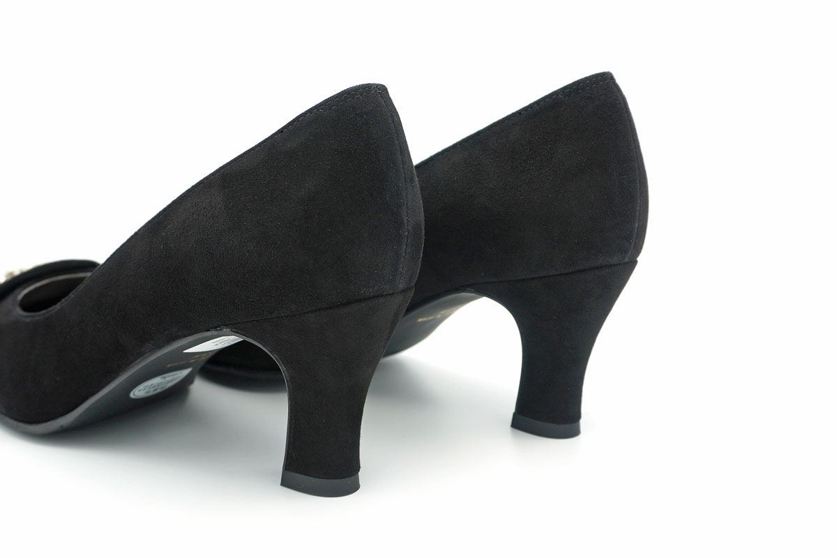 シックで高級感漂うレディライクなポインテッドトゥのデザインパンプスです。