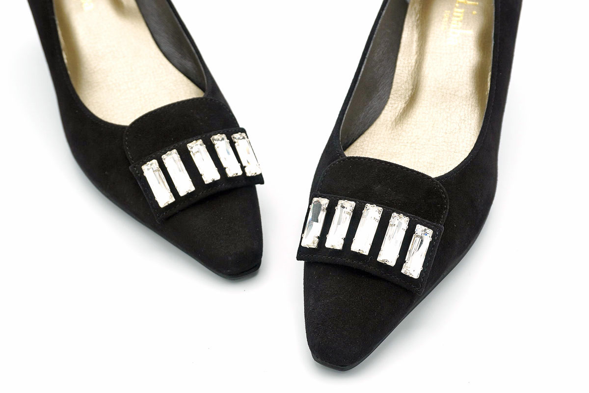 シックで上品な素材使いに輝くラインストーンが良く映えます。