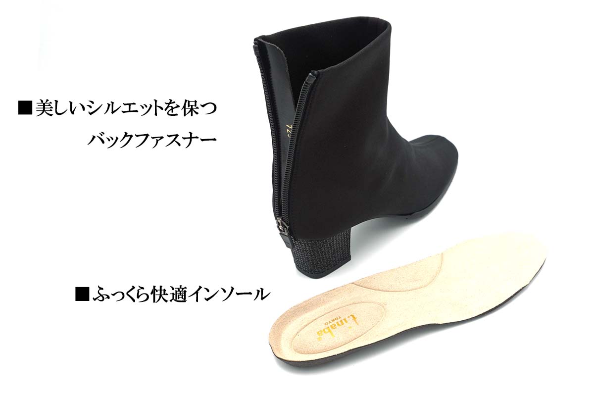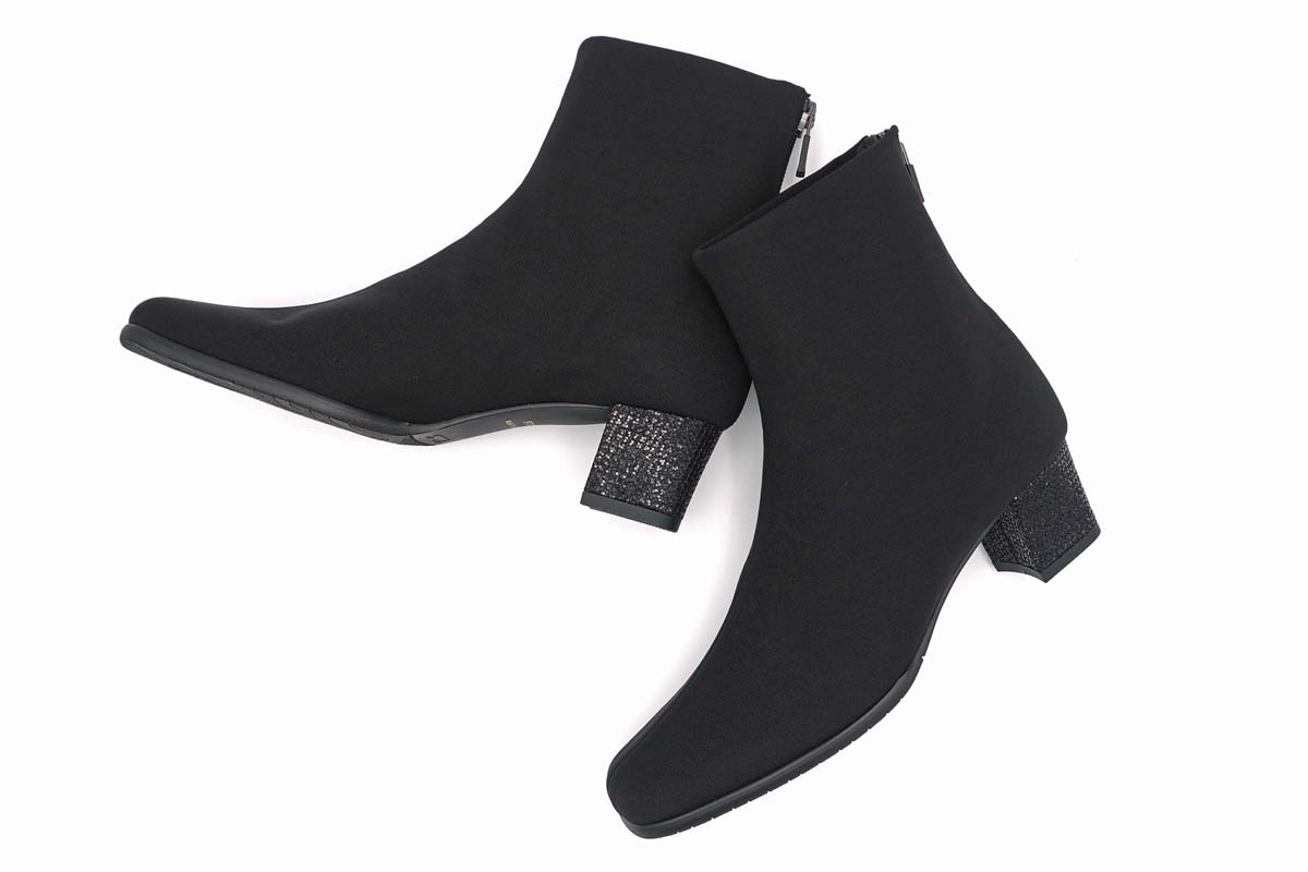 シンプルなブーツに、ヒールにはは華やかに、イタリア製ラメ素材を合わせました。