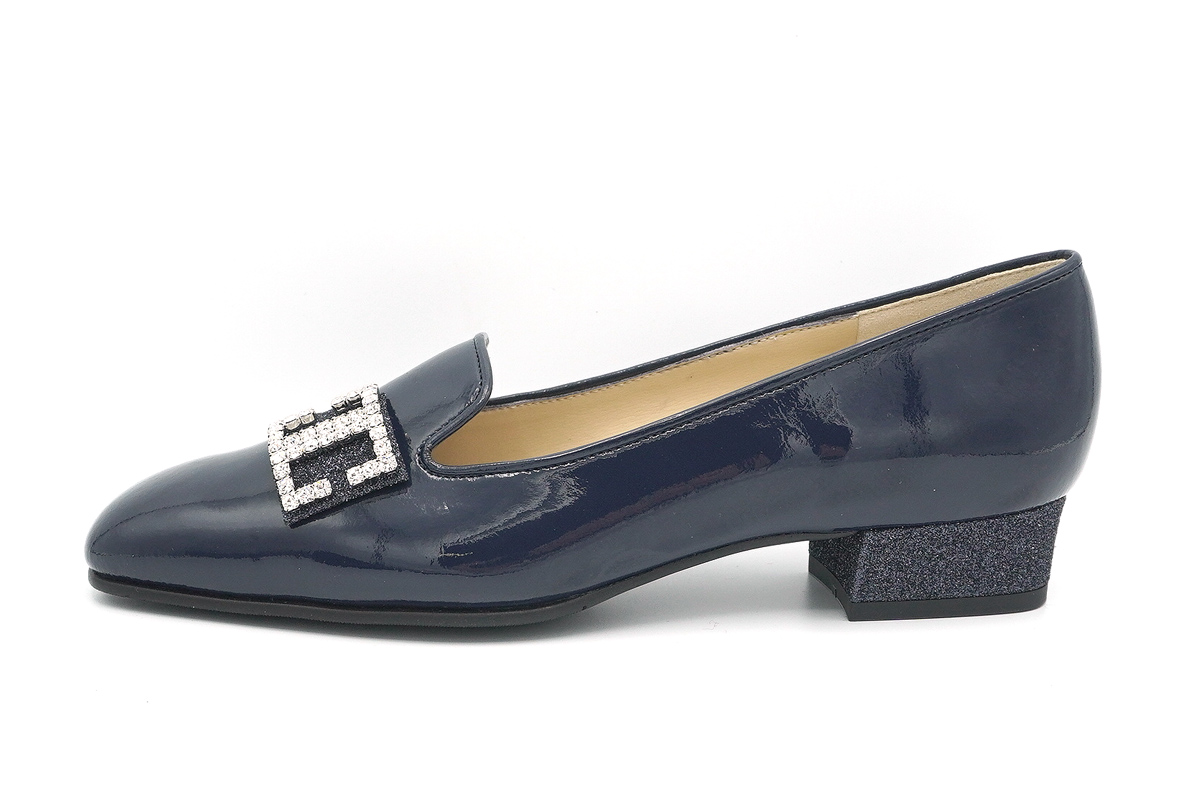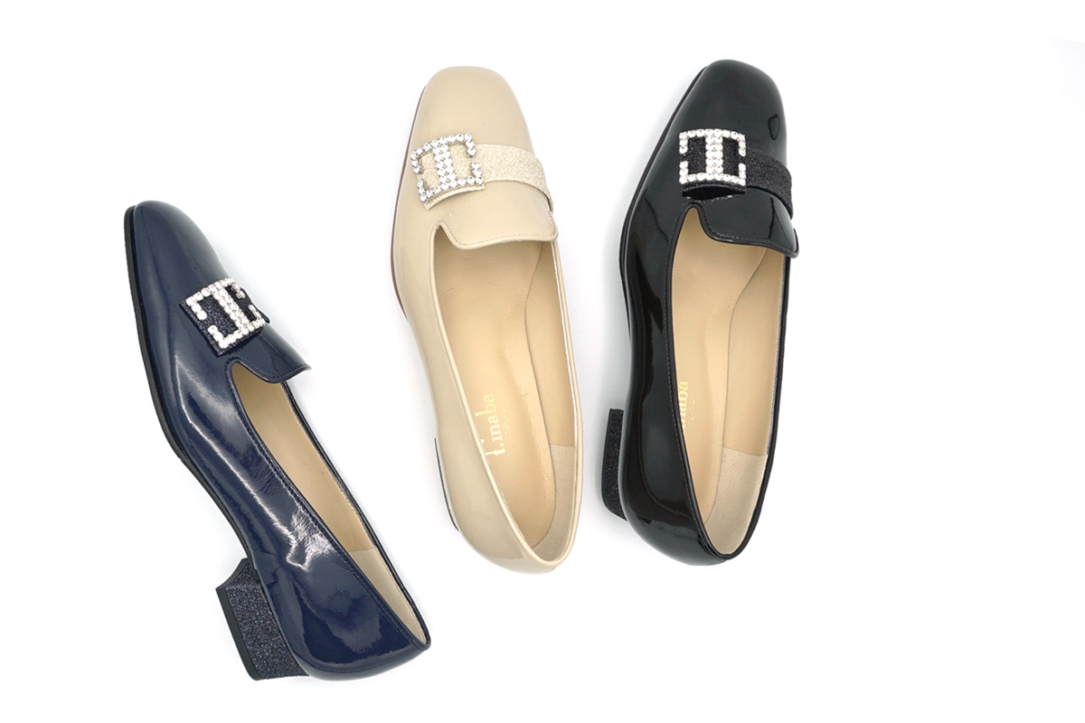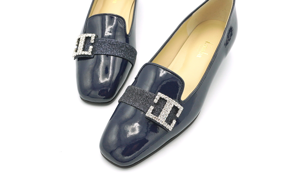 ラインストーン付きバックルが華やぎを添えるオペラパンプスです。