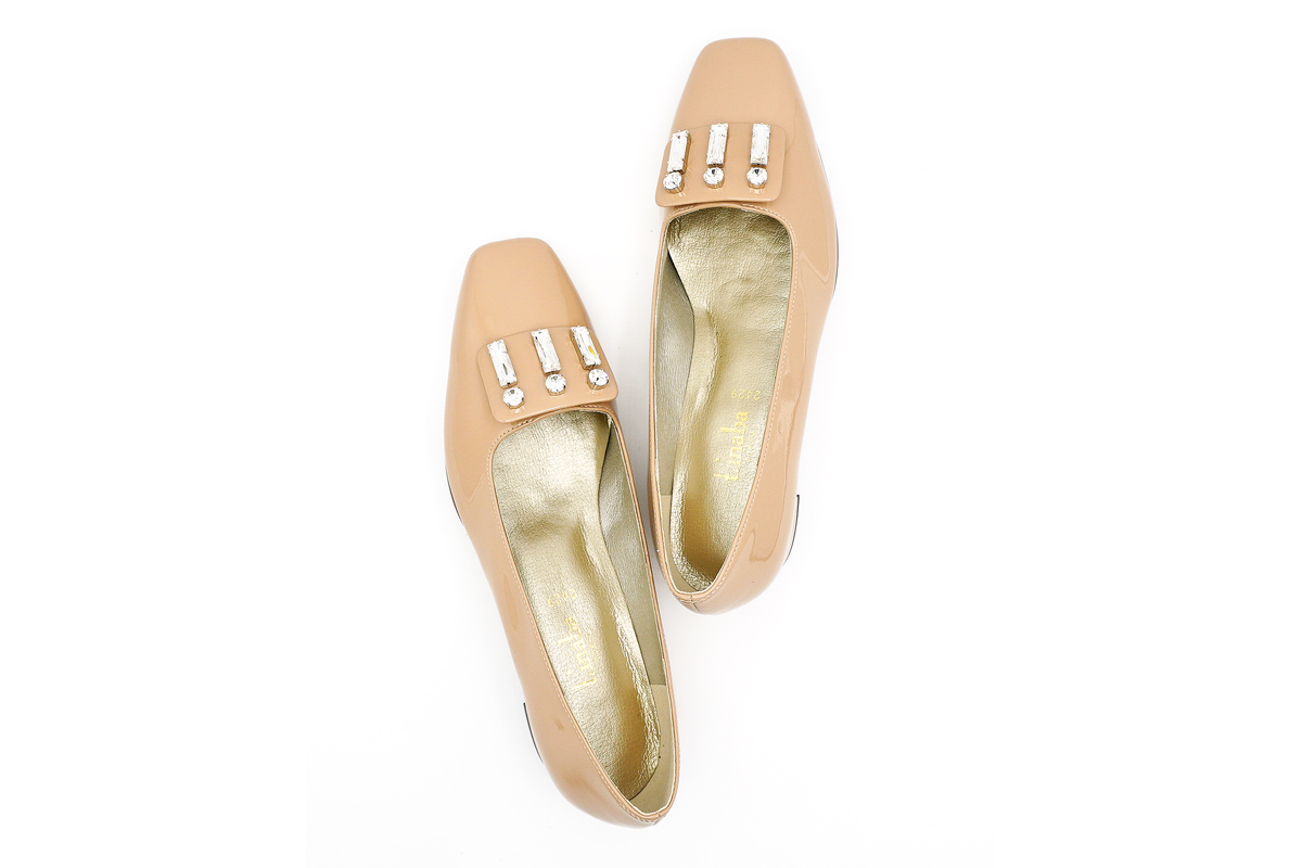 本体は優しい足あたりで、艶やかなテクスチャーのストレッチエナメルを使用。
