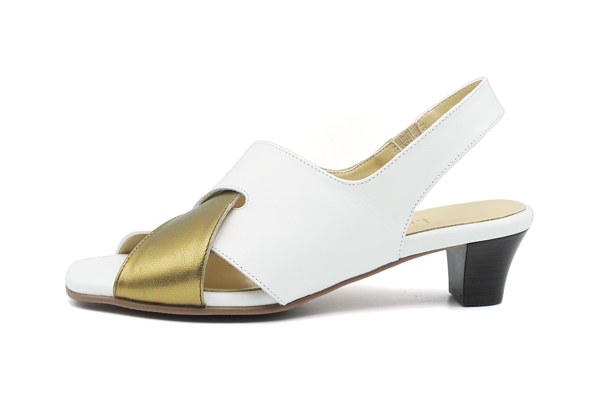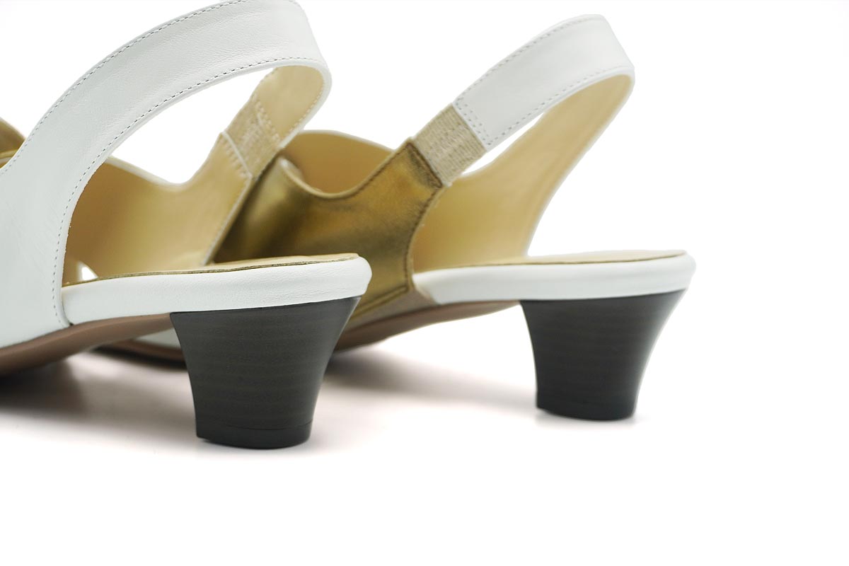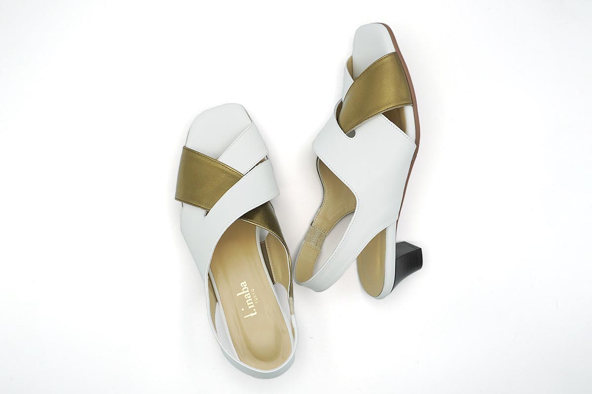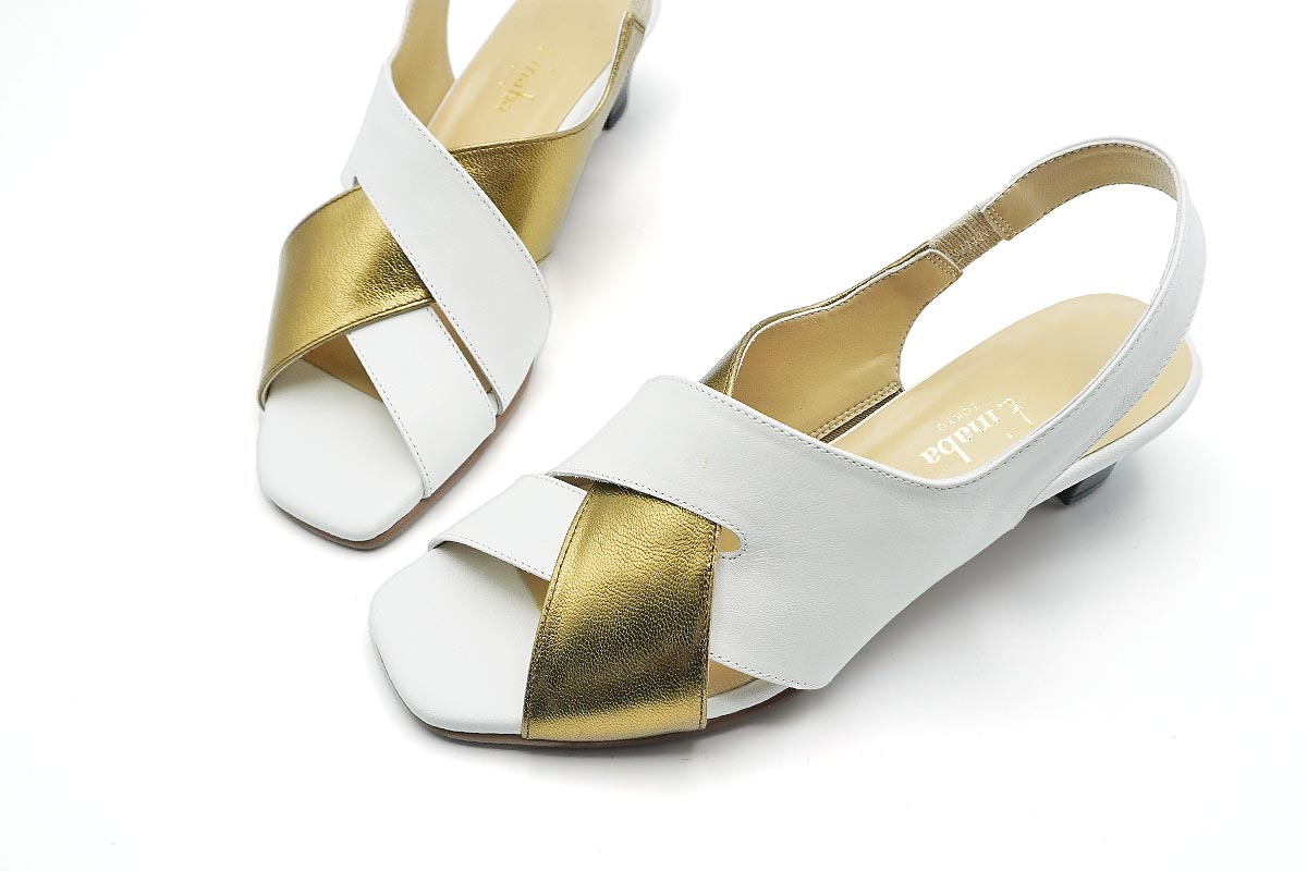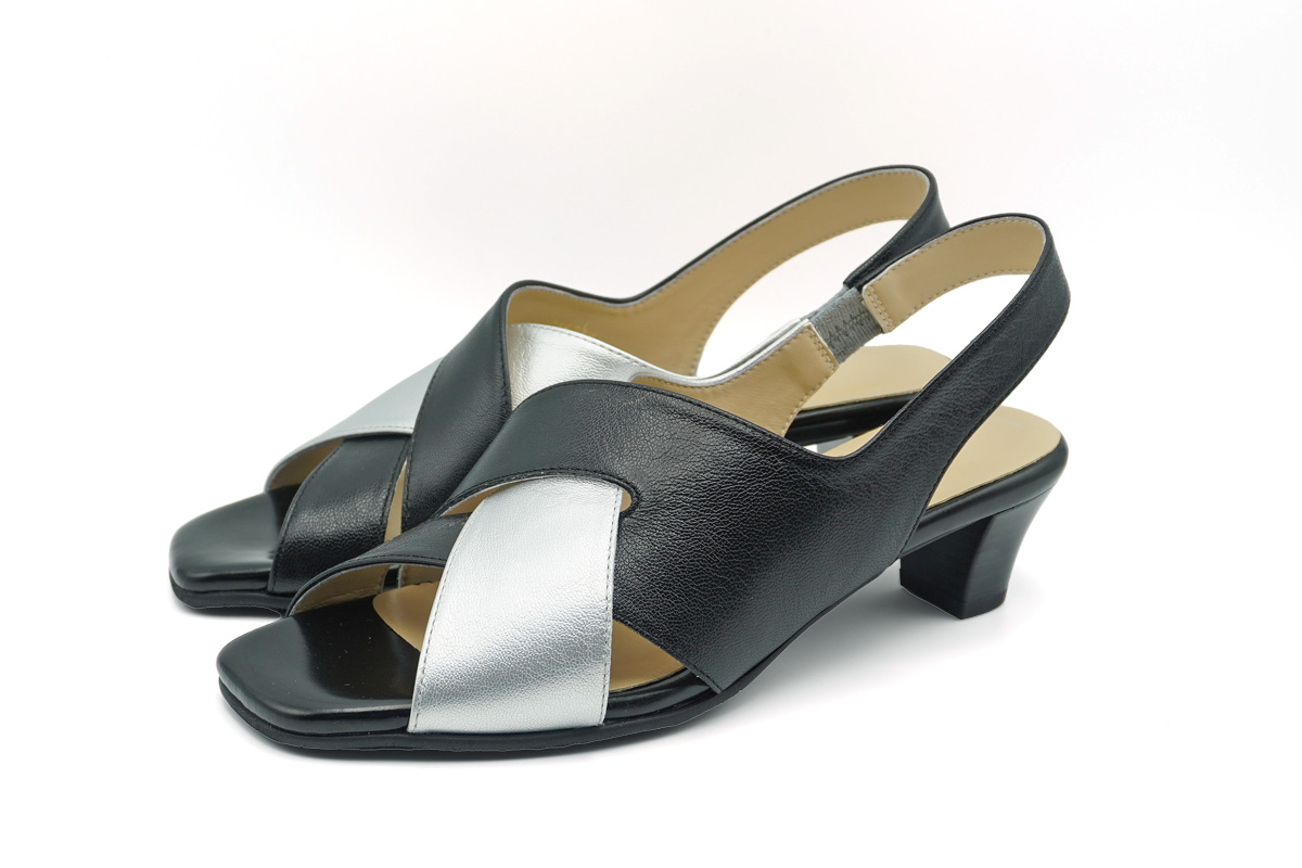 シックで趣のあるデザインでありながら、斬新な配色が都会的なエレガントサンダルです。