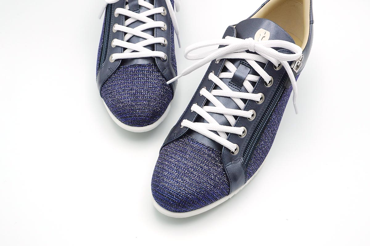 足元を明るく爽やかな印象に導く煌めきを放つイタリア製グリッター素材を使用しています。