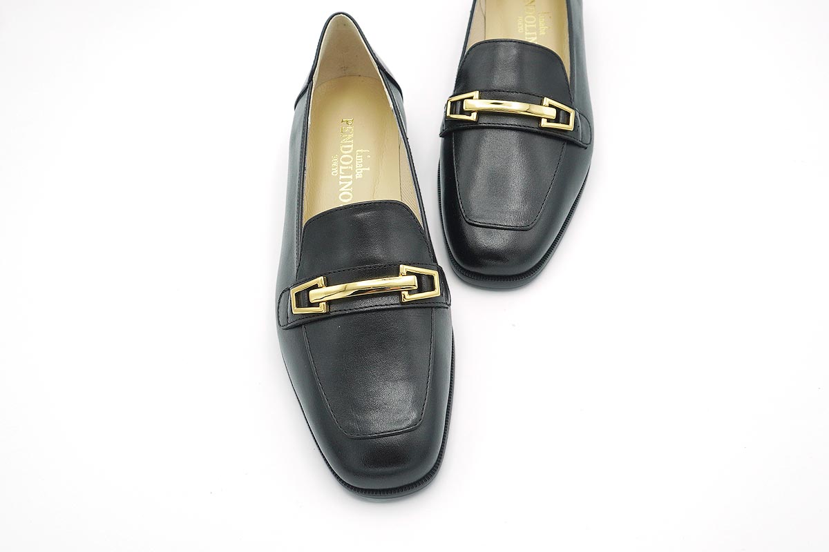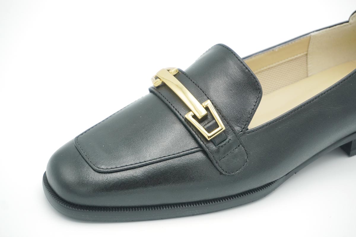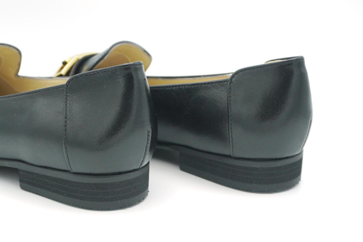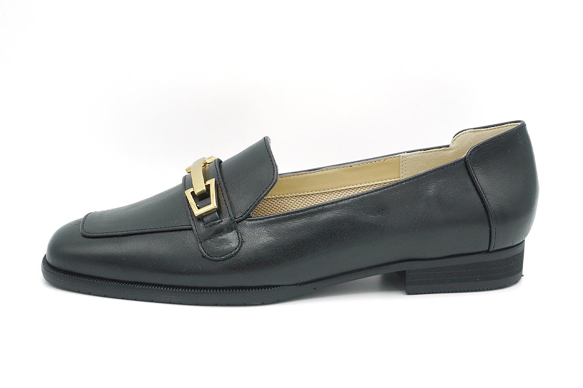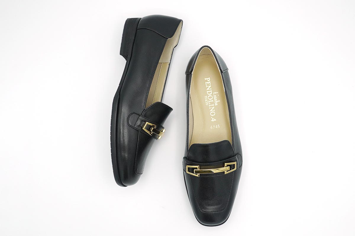 きちんとした印象を与えてくれる金具付きローファーです。