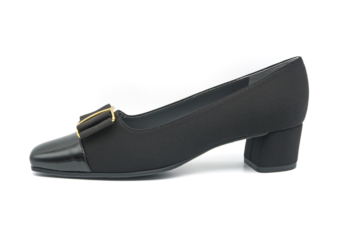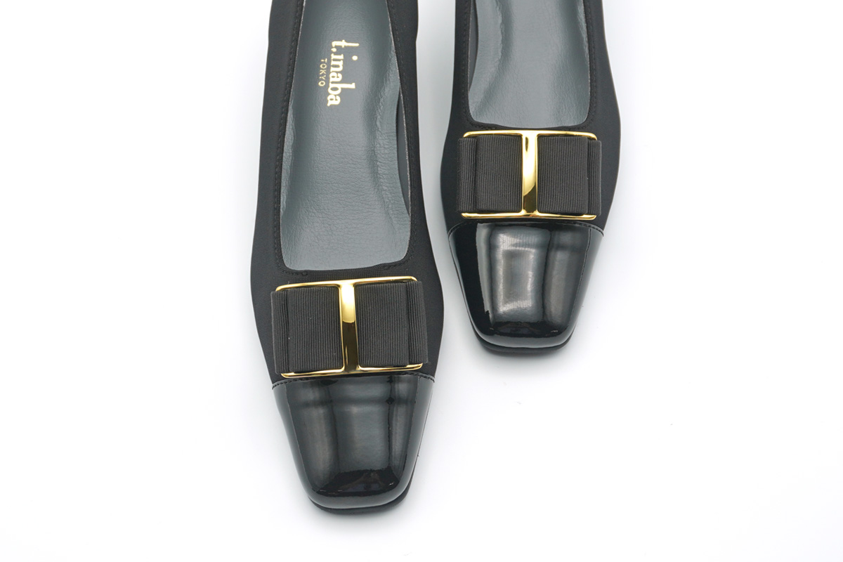 リボン付きデザインパンプスです。