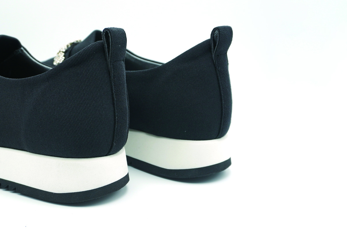 上品なパンプスと、スポーティーなカジュアルシューズの中間のようなデザイン。