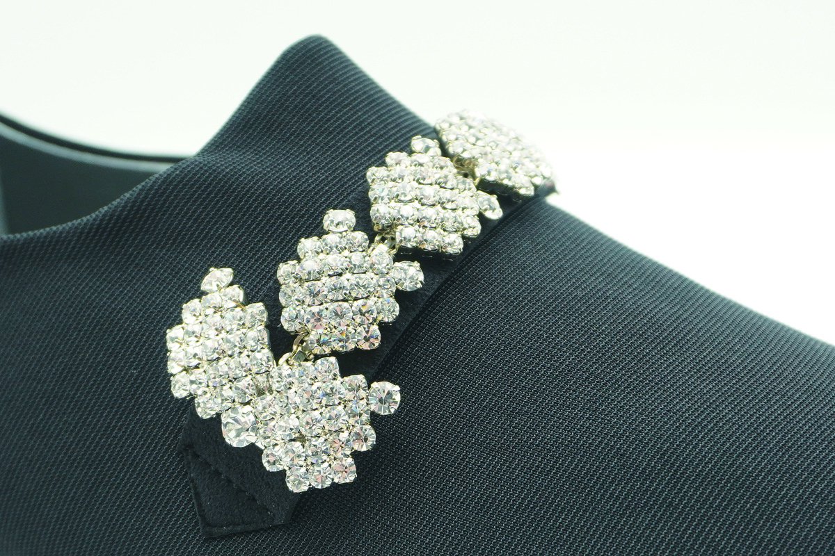 ラグジュアリーな輝きと、マットな質感のストレッチ素材のコントラストが美しい、