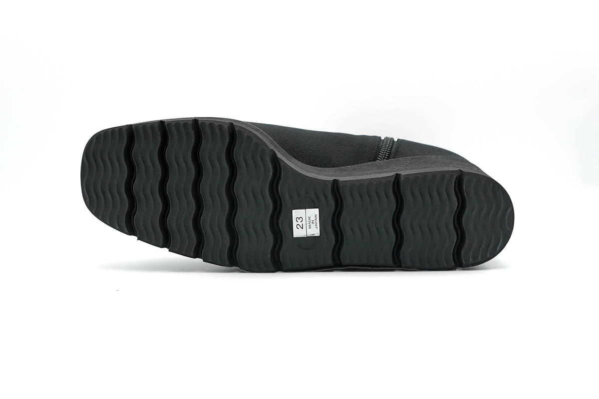 シンプルなブーツに、厚底のソールを合わせ、アクティブな雰囲気に仕上げました。