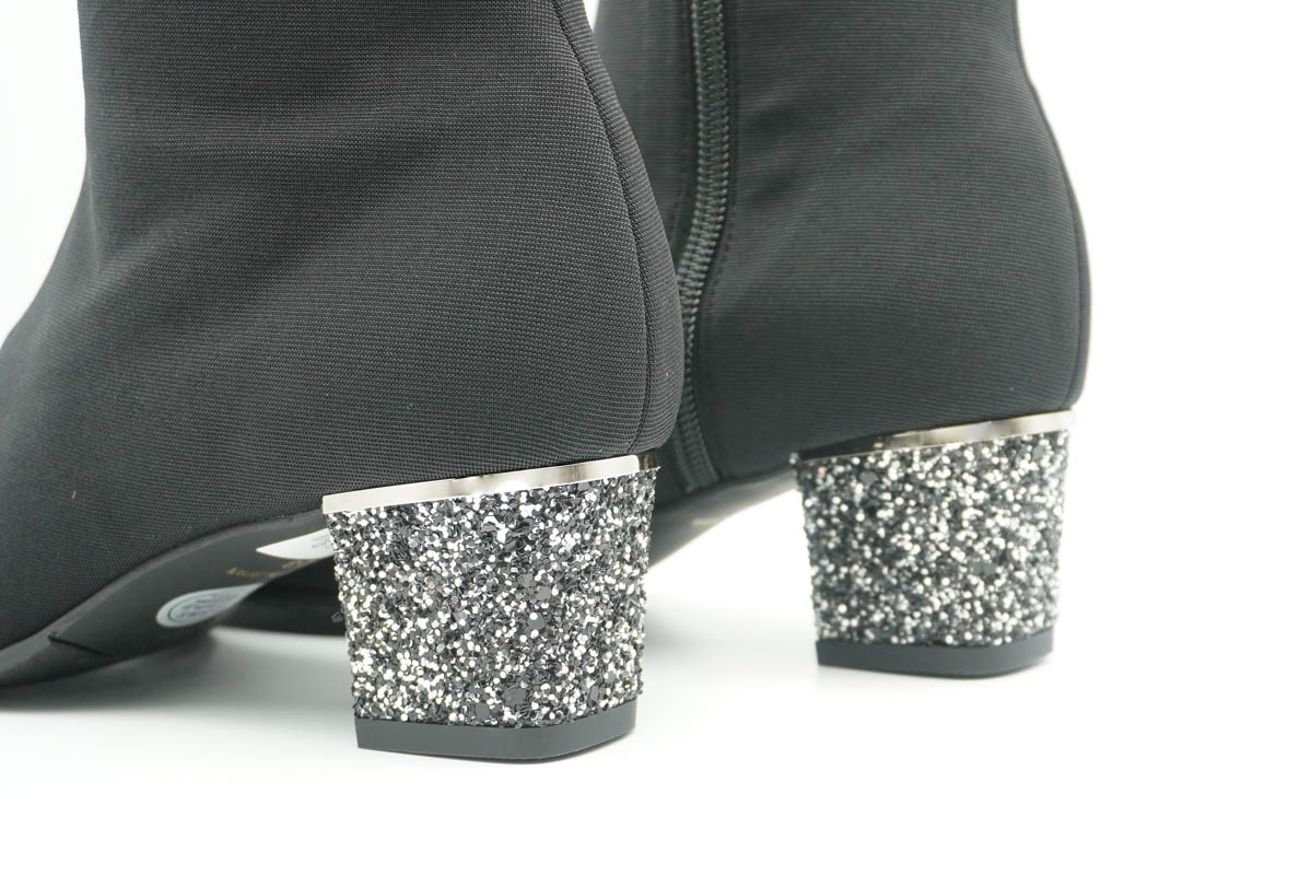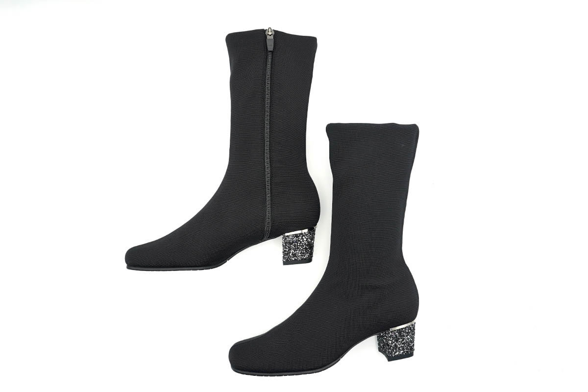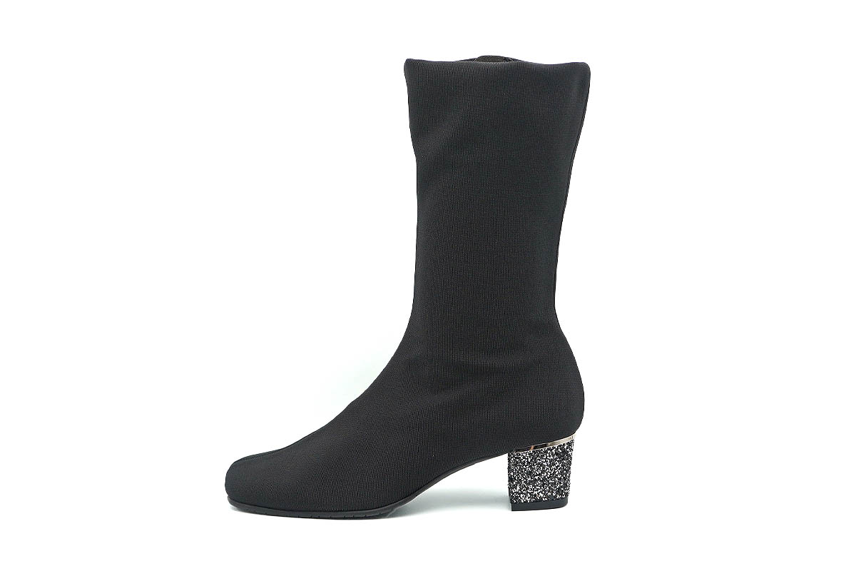 シンプルなブーツの踵に、イタリア製グリッターのヒールの輝きが良く映えます。