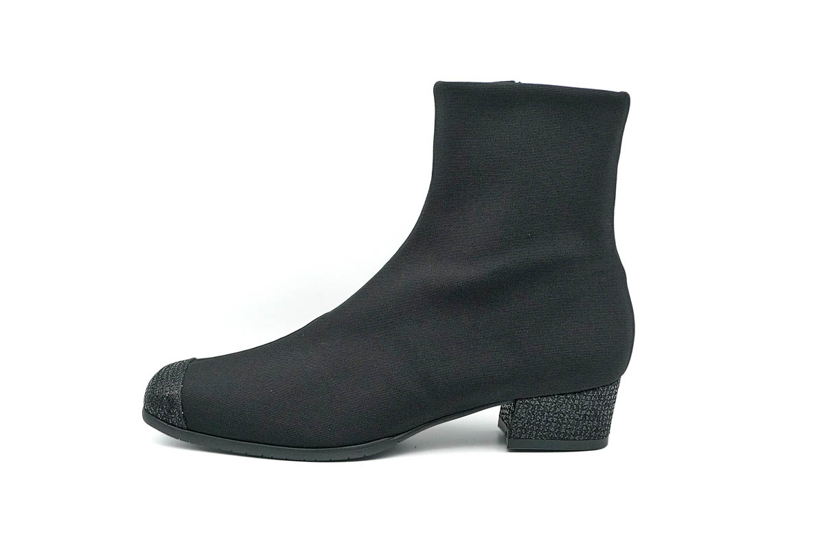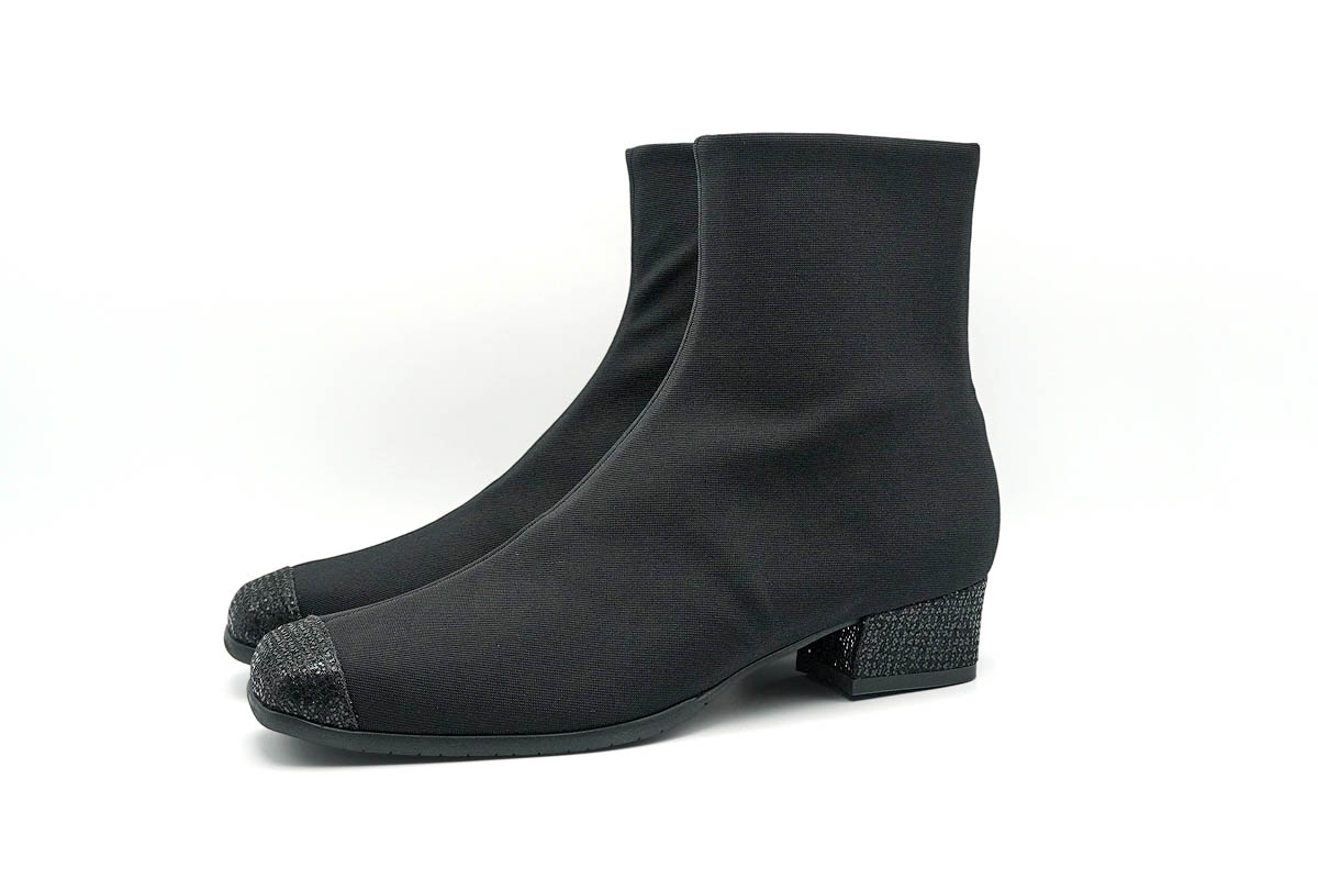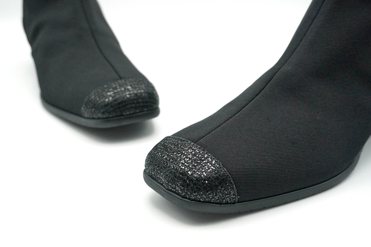 シンプルなブーツの踵に、イタリア製グリッターのヒールの輝きが良く映えます。
