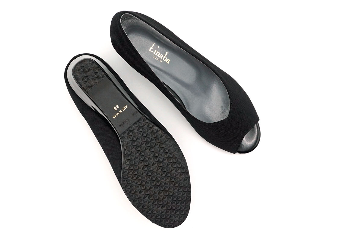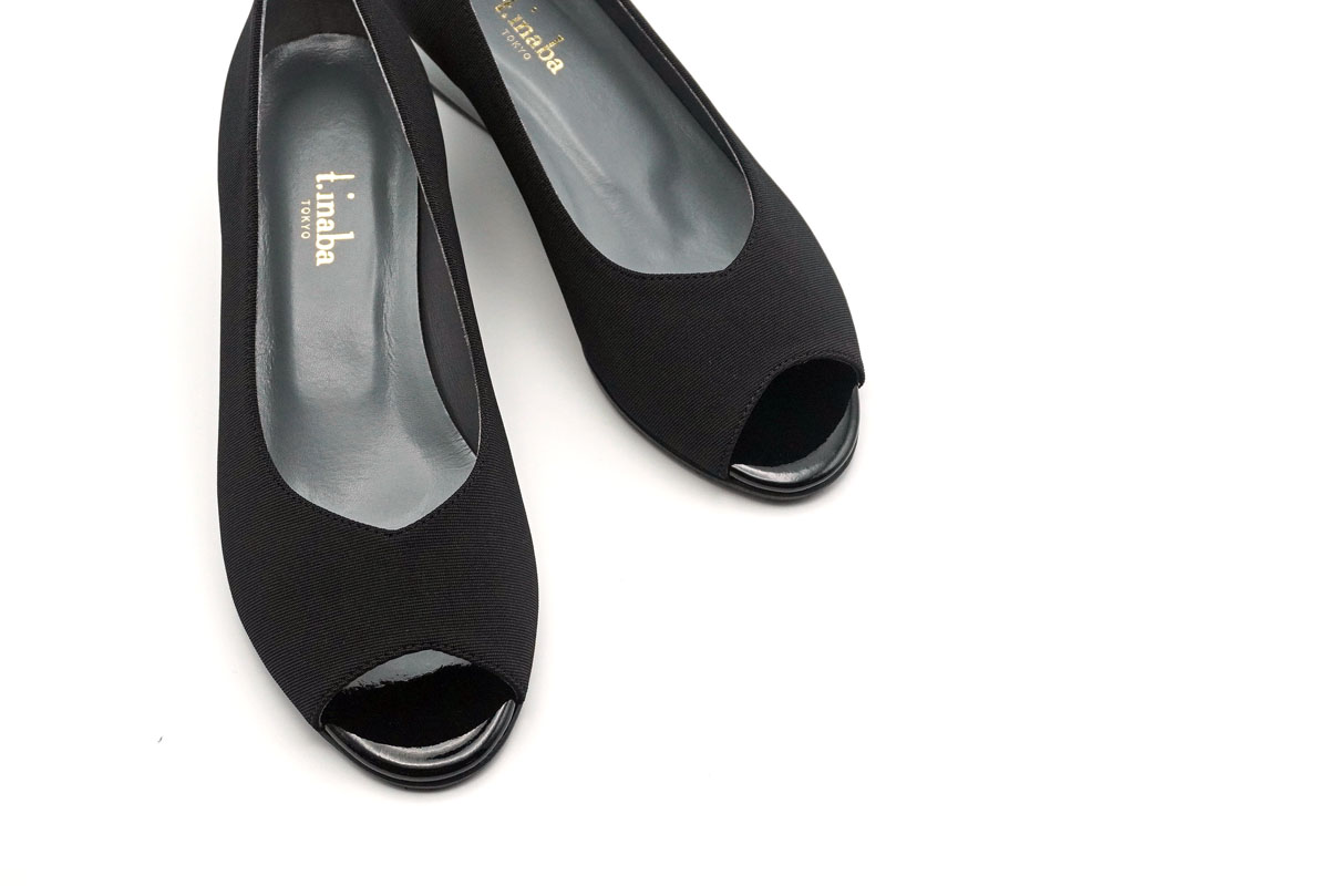 イナバ・オリジナルストレッチの質感を活かしたオープントゥパンプスです。