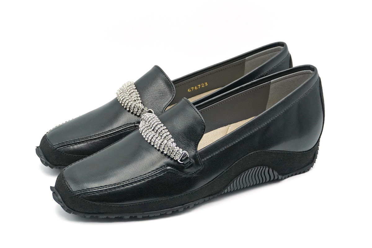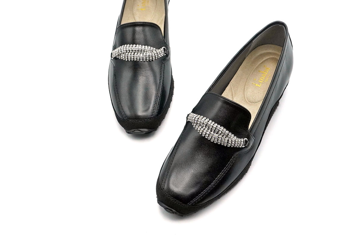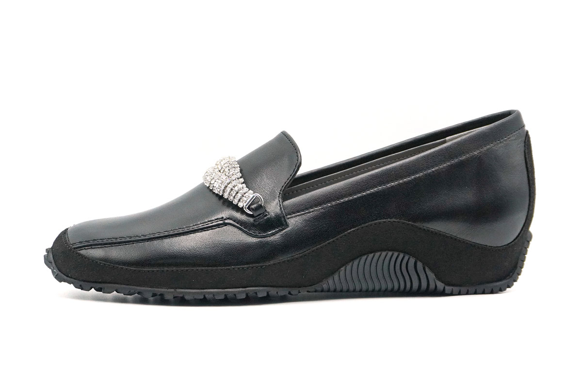 贅沢にラインストーンをあしらったビジュー付きのボロネーゼ製法のスリッポンです。