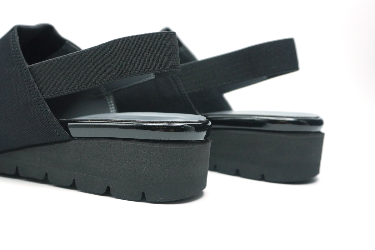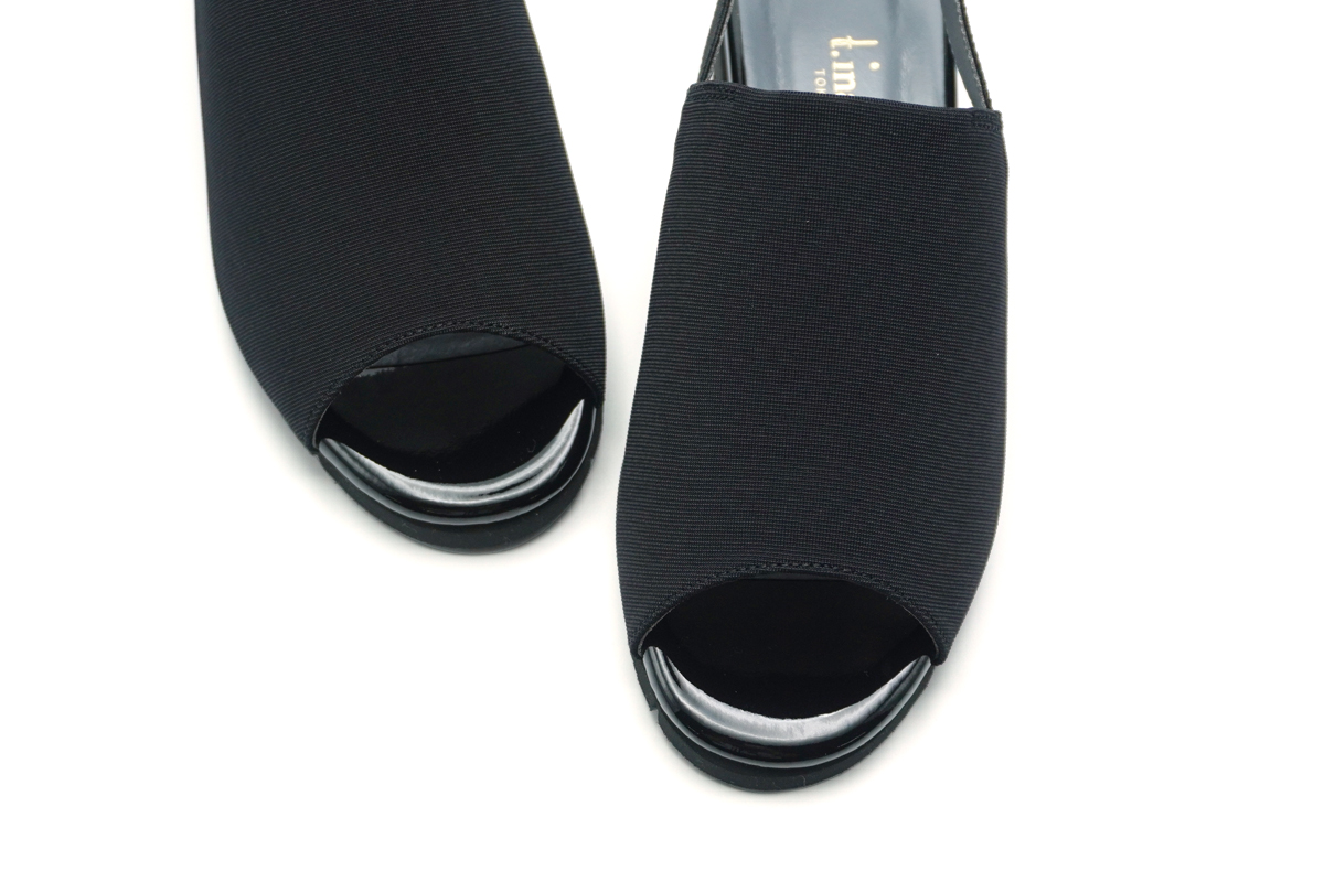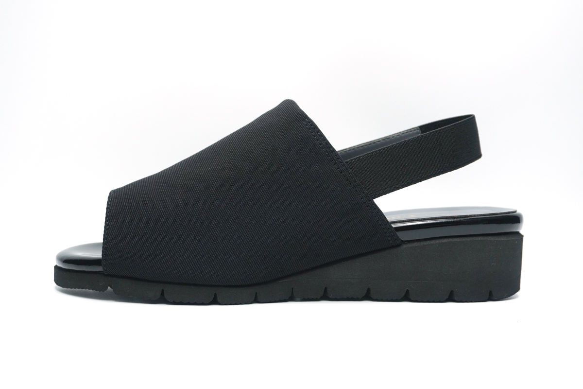 スタイリッシュと快適を備えたオープントゥのデザインのストレッチサンダルです。