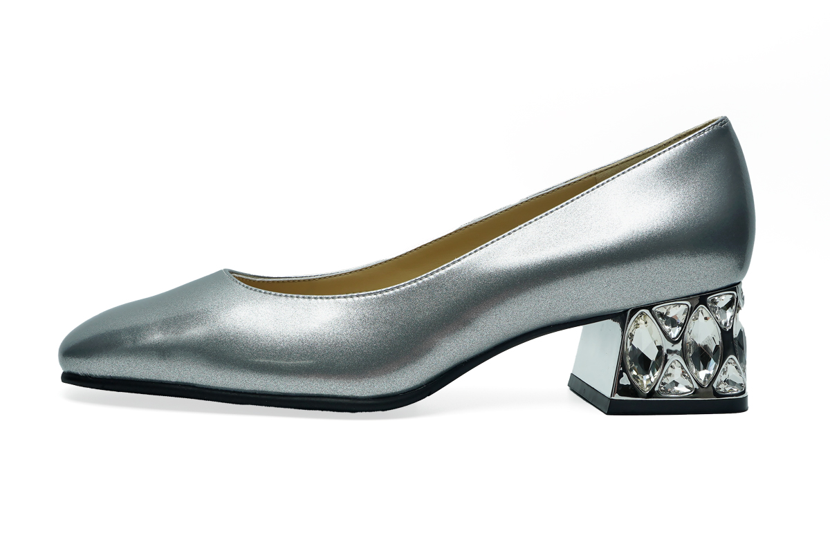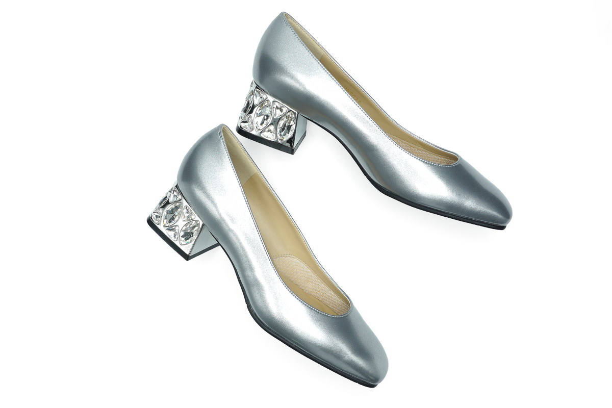 どこから見ても美しい大粒クリアストーンのヒールが、特別な日の装いを一段と引き立てます。