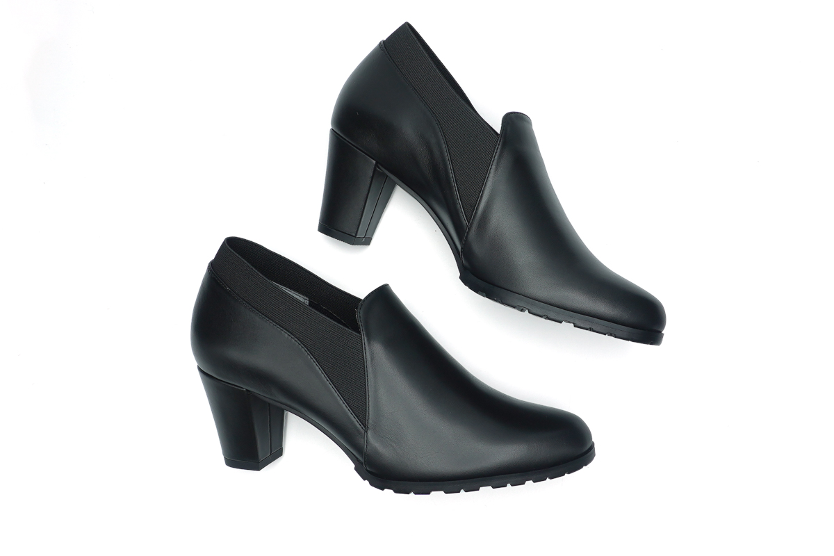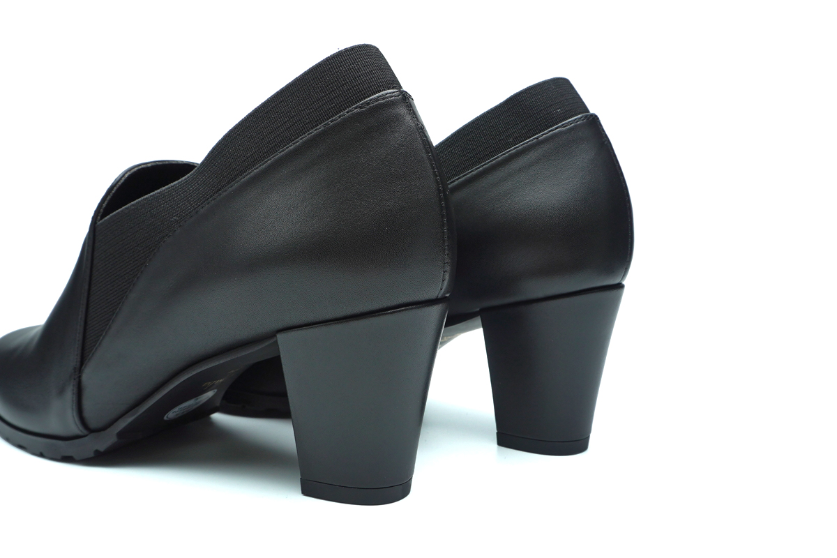 伸縮性のあるサイドゴアで着脱もスムーズ、ブロックヒールがしっかりと支えてくれます。