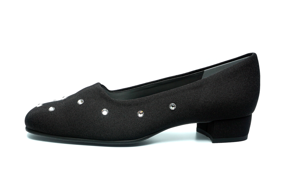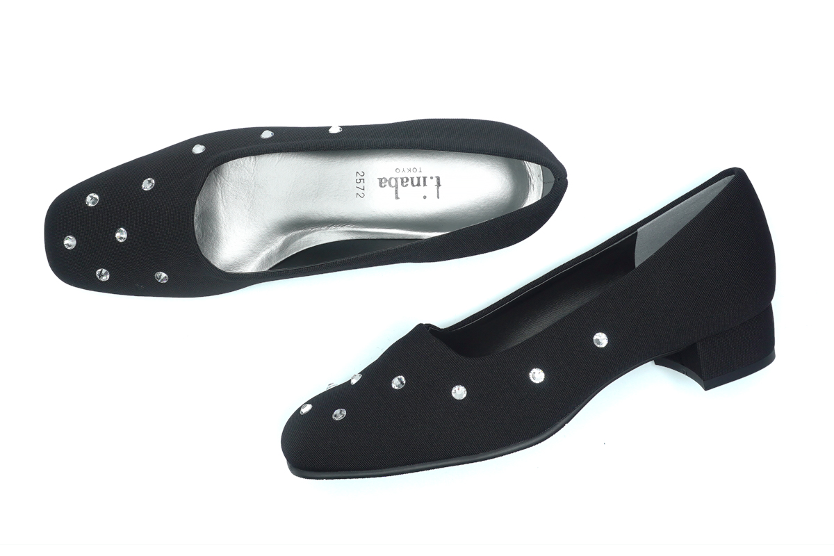 全面に散りばめた、ラグジュアリーなローヒールパンプス。